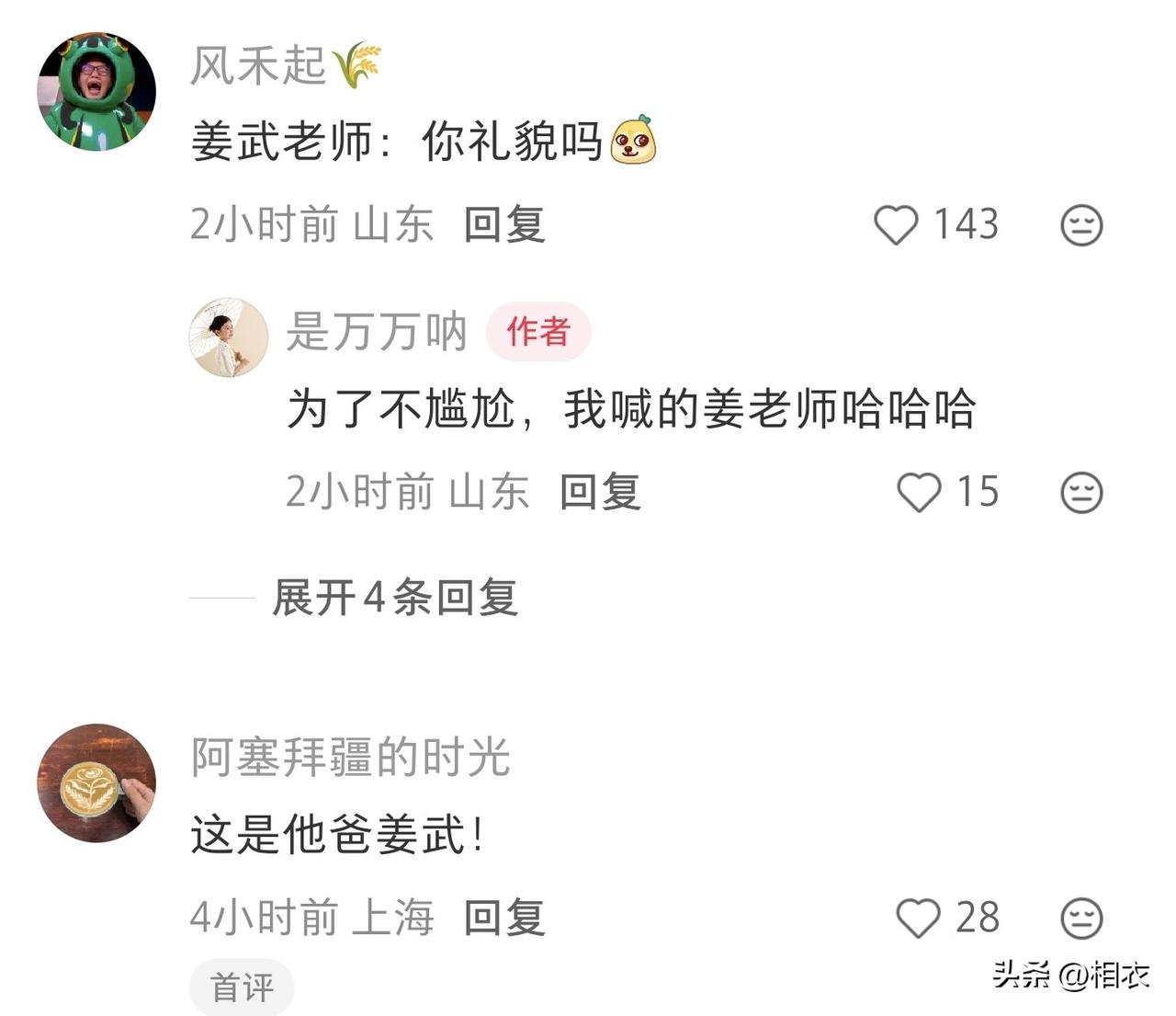 网友偶遇姜武, 还和姜武一起拍了张照片。 照片里姜武穿着灰绿色的休闲外套和黑色运动裤,戴着一副墨镜,两只手插在口袋里,样子特别放松,也特别随和。 她可能因为太紧张了,不小心把姜武当成了他的哥哥姜文。 还在网上发了“偶遇姜文老师”这几个字,后来在评论区她说当时叫称呼的是“姜老师”。 这样也挺好,既避免了尴尬,也显得很有礼貌,不得不说他反应还挺快。 姜武今年57岁,是演艺圈里大家都认可的实力派演员。 他和哥哥姜文长挺像的,所以常常被人认错。 他演戏很多年了,演过好多经典的角色,平时生活里特别低调。 和自己的初恋妻子宋妍在一起三十多年了,从来没有传出过不好的事情。 他有一个儿子和一个女儿,都长得很好看,一家人生活得特别幸福。 其实姜武和姜文虽然是同母异父的兄弟,长相很接近,但性格和演戏的路子完全不一样。 姜武总是踏踏实实地演戏,安安静静地做人,从来不靠着哥哥的名气来让别人注意自己。 完全是靠自己的本事在演艺圈站稳了脚跟,这种清醒又踏实的做法,才是最让大家喜欢的地方。 认错人其实是常有的事,但她妥当地化解这个尴尬,既给了明星足够的尊重,也给自己留了面子。 长得像只是一种缘分,人品好才是真正能让人喜欢的原因。
