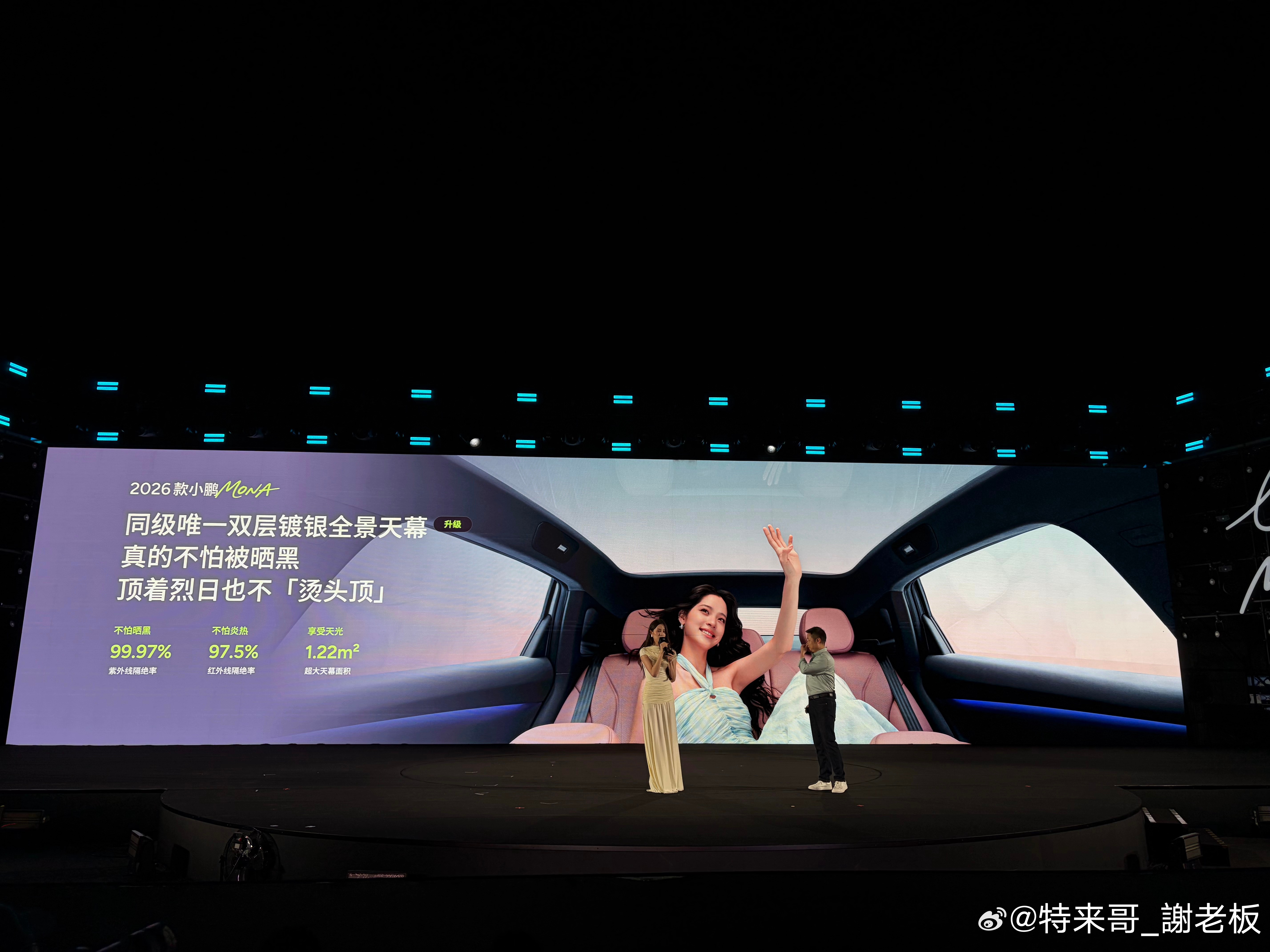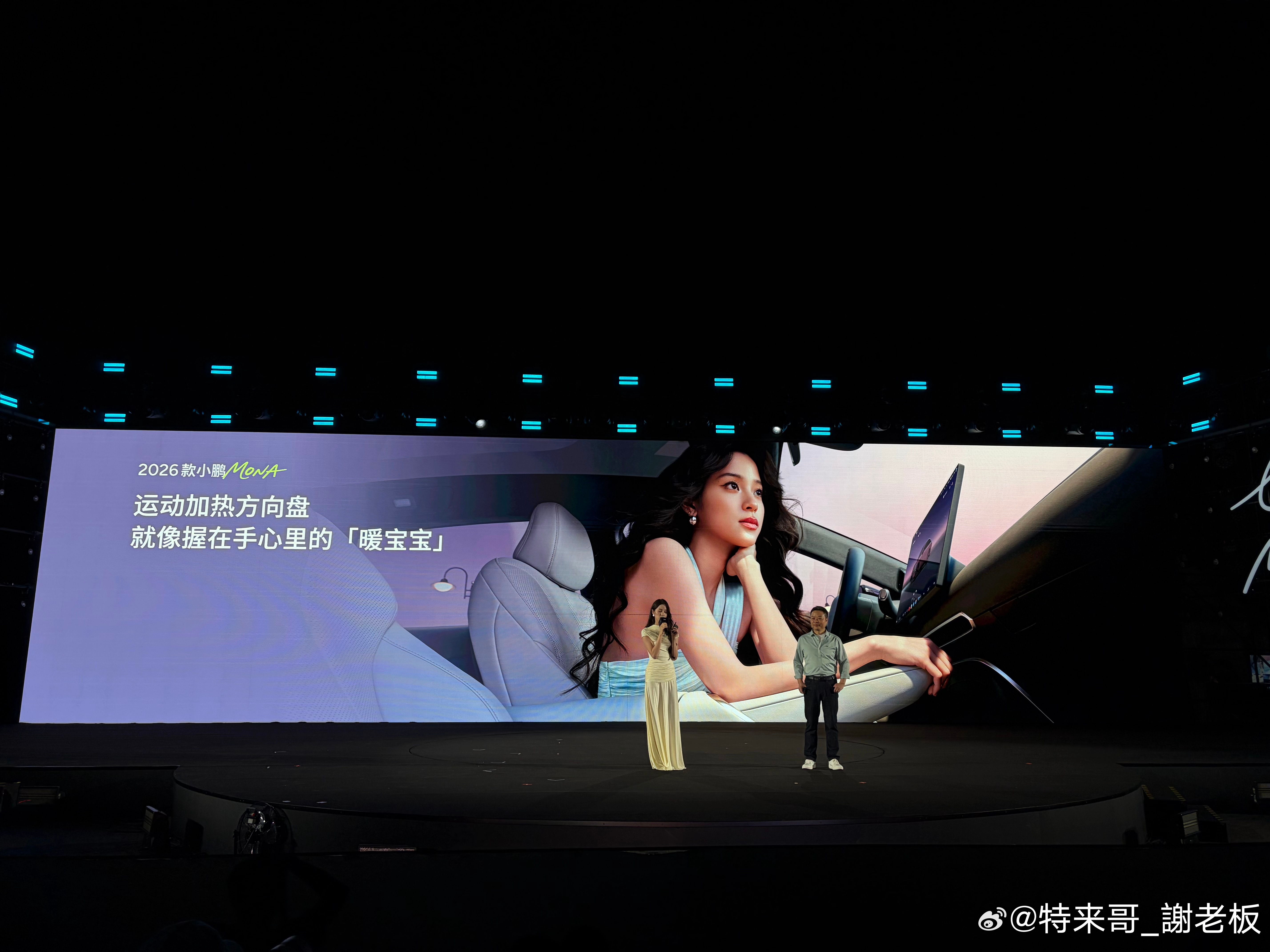 欧阳娜娜开新款MONA冒雨参加发布会欧阳娜娜代班何小鹏发布会讲车