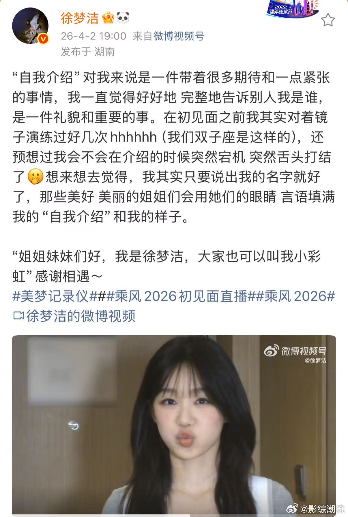 徐梦洁乘风自我介绍徐梦洁对镜子演练自我介绍 看到徐梦洁对镜演练自我介绍的画面,忍不住姨母笑出声!她一会儿歪头找角度,一会儿对着镜子比加油手势,像极了备考前的小朋友,这种不加掩饰的真诚,让我越发期待她的乘风舞台表现!