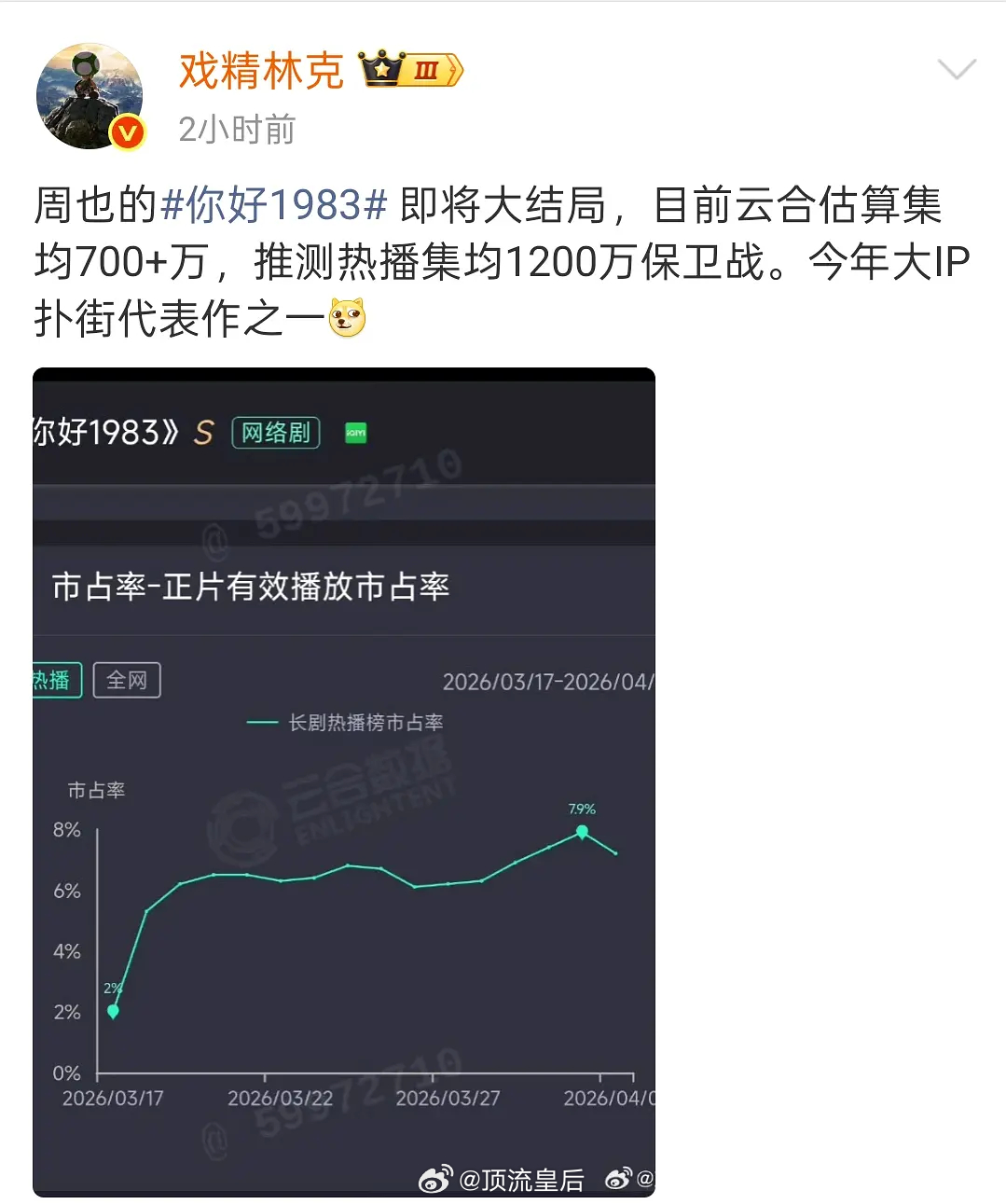 被粉丝投稿根据数据博主总结扑的毫无声量的剧你好1983 冬去春来 危险关系