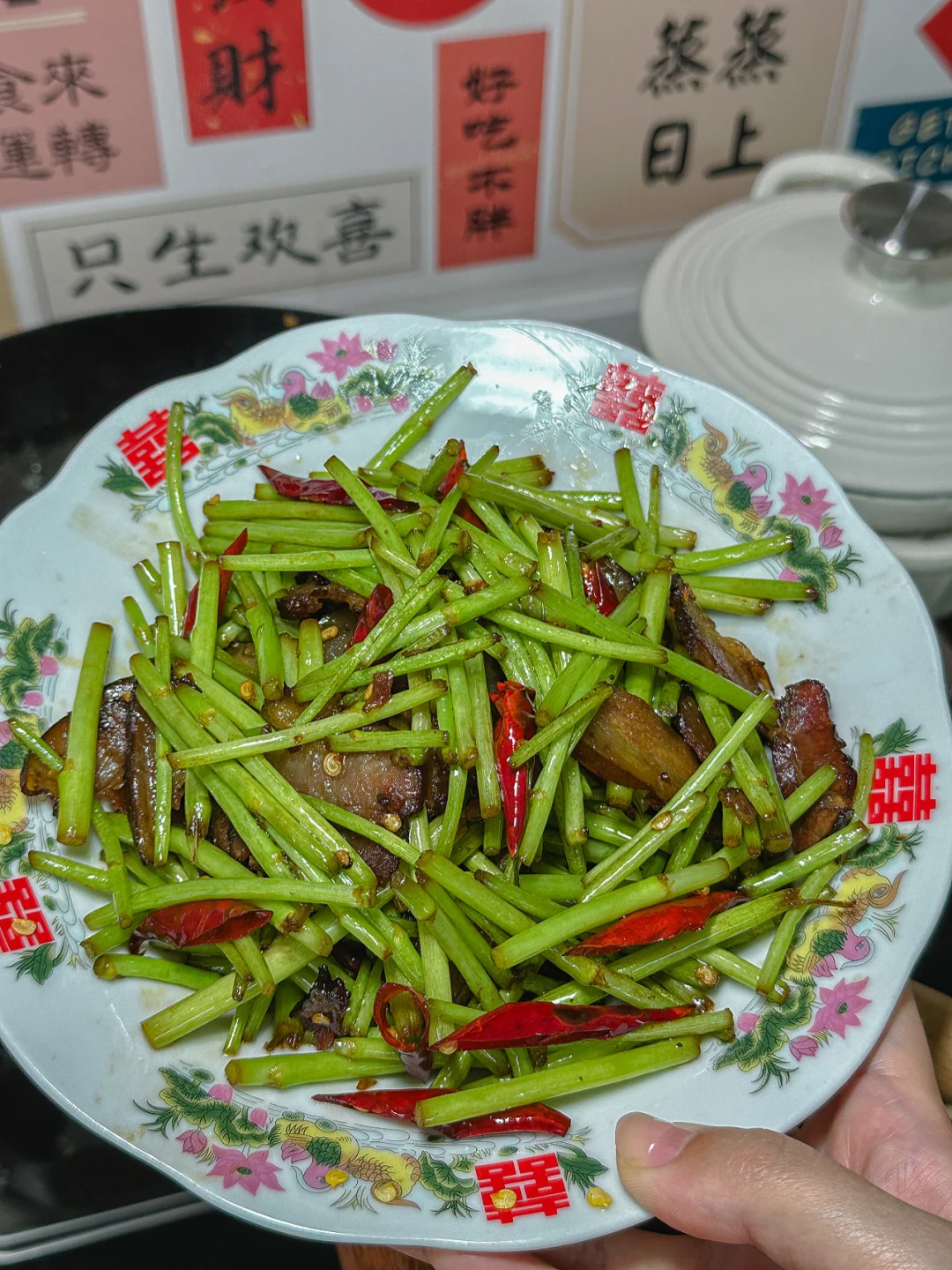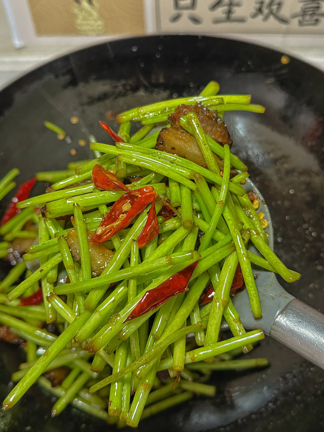 藜蒿是翠绿的、脆的。腊肉是油润透亮的