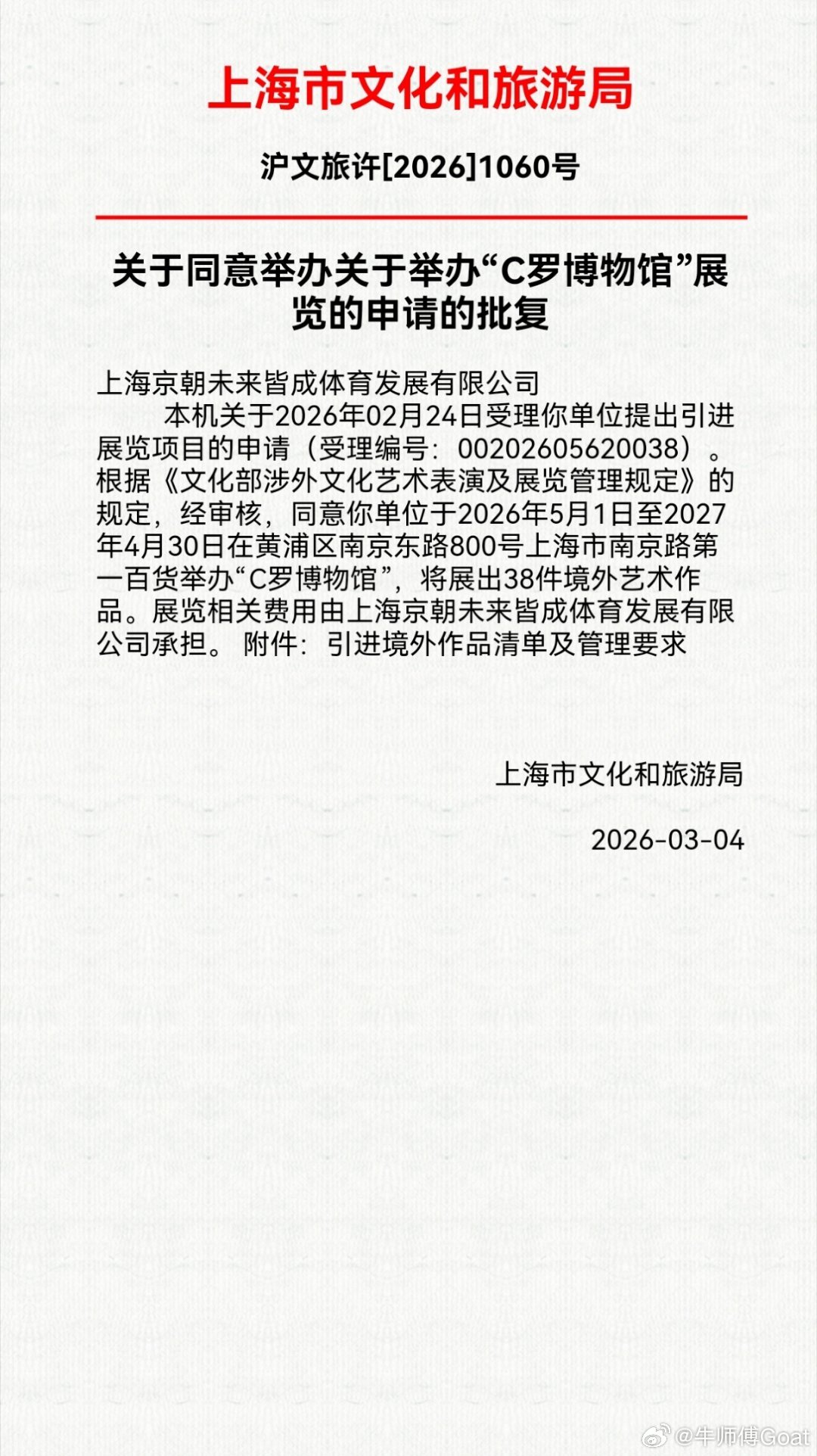 C罗 我在想上海博物馆会不会和香港博物馆是一批货。至少香港 c 罗博物馆是开放至六月,目前已经提前到 5 月 10 日,而上海博物馆是 5.1 开,可能 4 月份会把香港的展品移到上海。目前看来可能是一批展品。