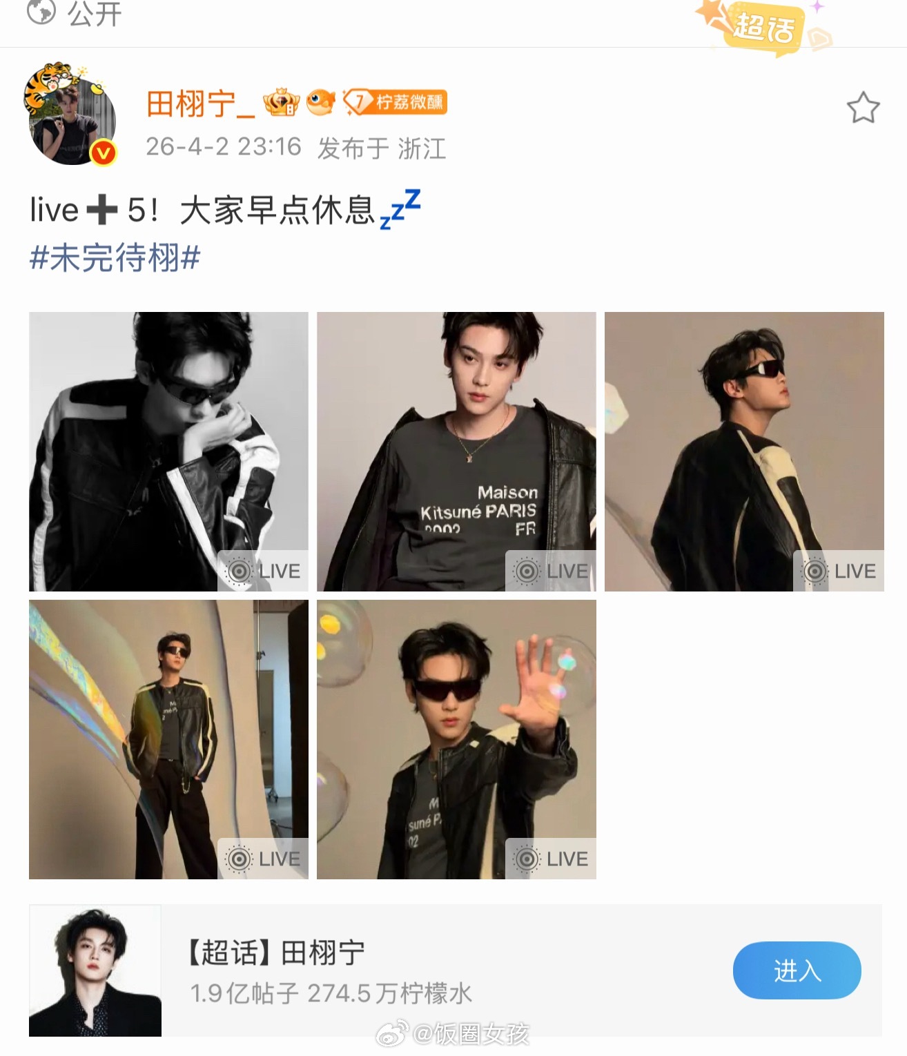 田栩宁大家早点休息 田栩宁的五张live图治愈上线温柔提醒:别熬夜啦,早点休息,