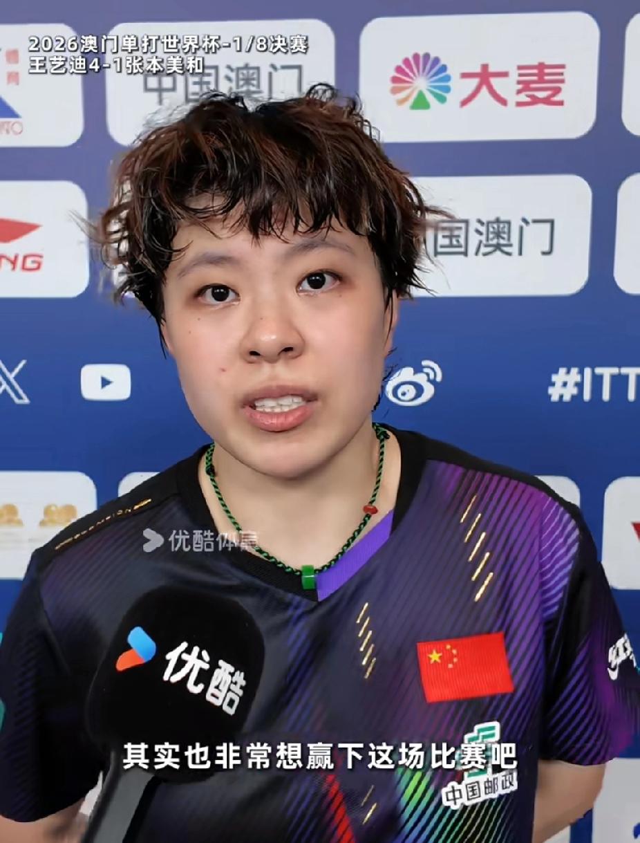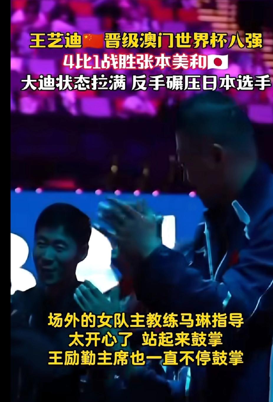 王艺迪4-1复仇张本美和!澳门世界杯杀进8强,马琳王励勤起立鼓掌太提气 谁看了不说一句大迪太牛了! 澳门乒乓球世界杯1/8决赛,王艺迪4比1完胜日本选手张本美和,成功挺进女单8强!这一战真的太解气了! 还记得重庆冠军赛,张本美和爆冷夺冠,这次澳门赛场,大迪直接用实力说话!定点反手强势碾压全台,每赢一分就振臂高呼,眼神里全是坚定,把对手打得毫无还手之力! 场边马琳指导直接站起来鼓掌,王励勤主席也不停拍手,全场都在为大迪沸腾!赛后大迪更是低调又清醒,说没想那么多签位,就是一场一场拼,能多打一场就多打一场。 从去年被张本美和淘汰止步16强,到今年强势复仇,大迪用实力证明了自己!这股不服输的劲儿,真的太圈粉了! 王艺迪 澳门乒乓球世界杯 王艺迪复仇张本美和 国乒