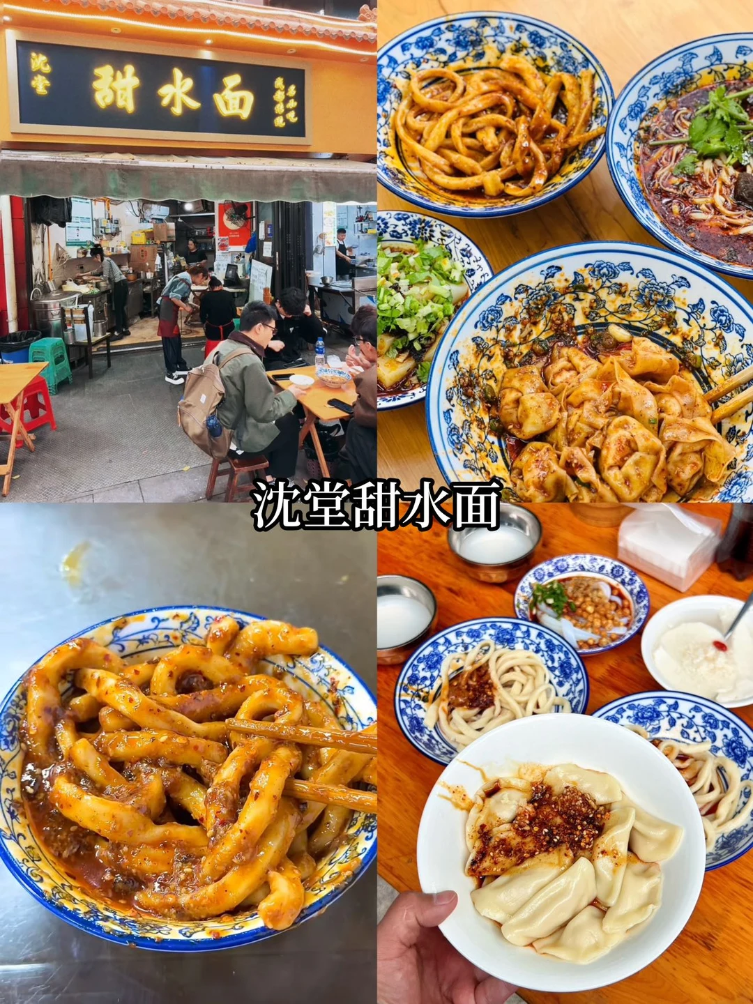 ✅沈堂甜水面:玉林土著私藏的甜水面老店!粗面劲道弹牙,甜咸红油裹满芝麻香,配冰醉豆花解腻绝了。吃完步行5分钟逛玉林西路