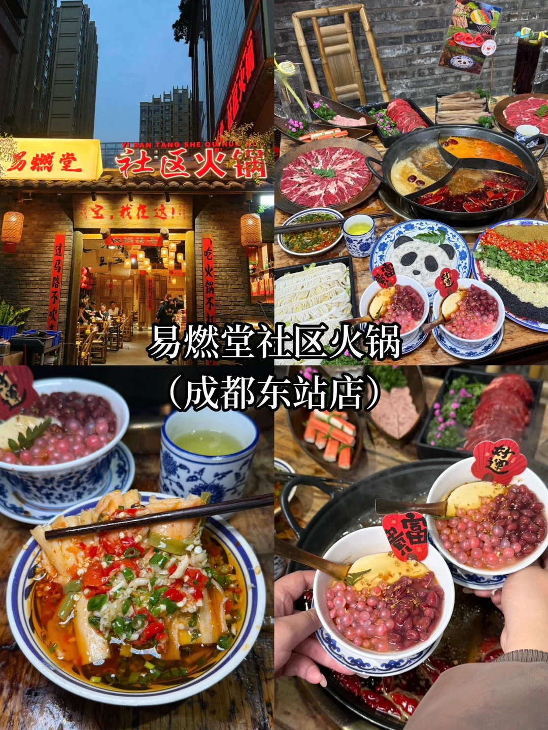 ✅易燃堂社区火锅(成都东站店):成都东站bi吃易燃堂,地道院坝火锅性价比高,太极牛肉真的好香,离成都东站近,下了动车就可以来吃