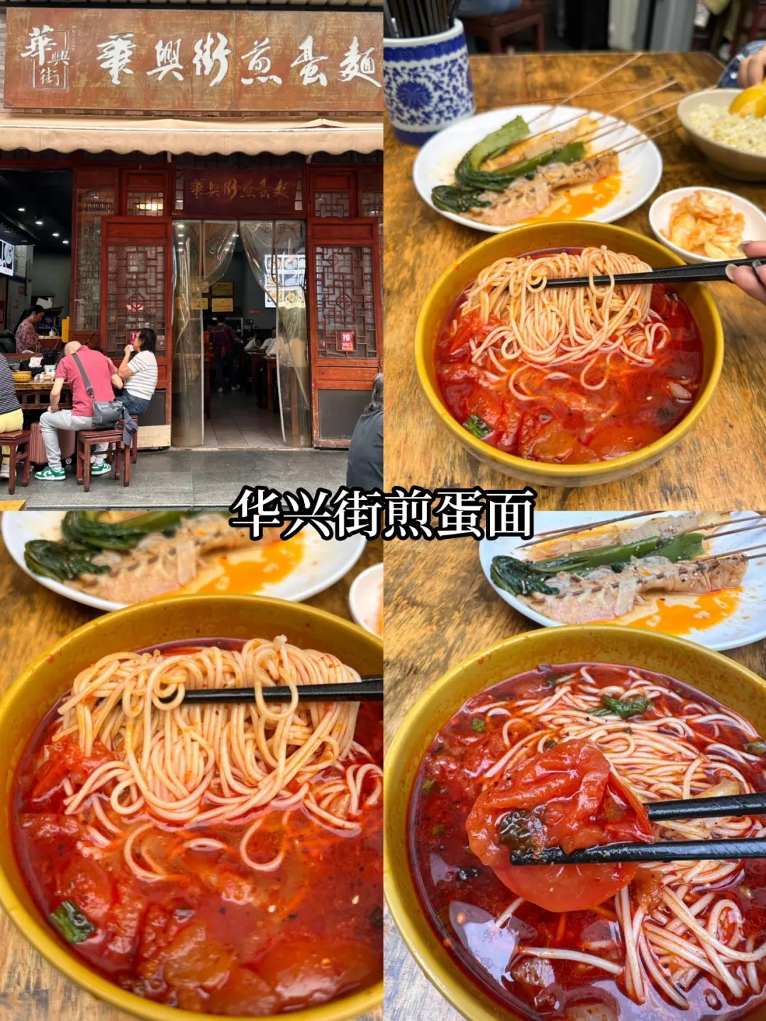 ✅华兴街煎蛋面:老成都梨园同款早餐!番茄红汤酸甜开胃,煎蛋外酥里嫩吸满汤汁,细面入味不坨。喝完汤走几步就到锦江剧场,刚好赶一场地道川剧