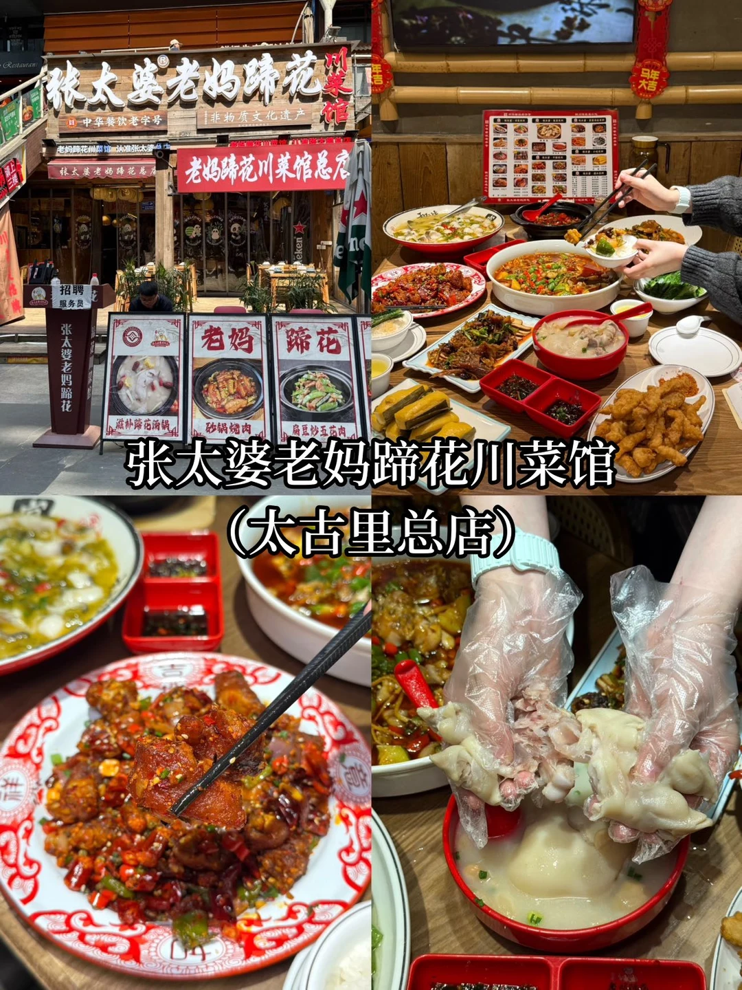 ✅张太婆老妈蹄花川菜馆(太古里总店):太古里旁地道川菜就选张太婆,蹄花慢炖入味,搭配跳水蛙、砂锅肥肠香辣过瘾,紧邻春熙路,逛吃一站式搞定