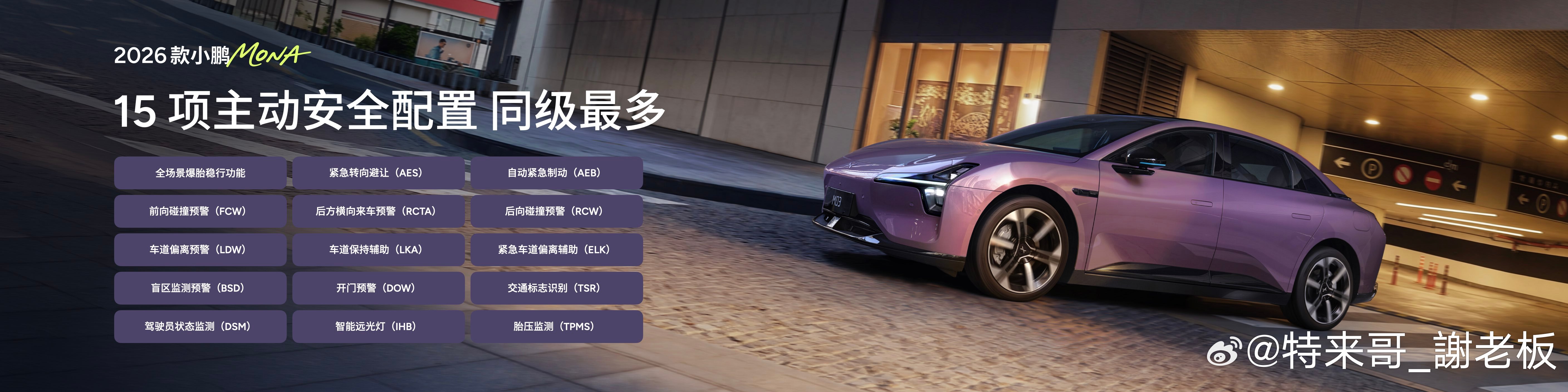 2026款小鹏MONA M03给到同级最多的15项主动安全配置,覆盖前向、后向、侧向高频风险场景,为出行保驾护航。