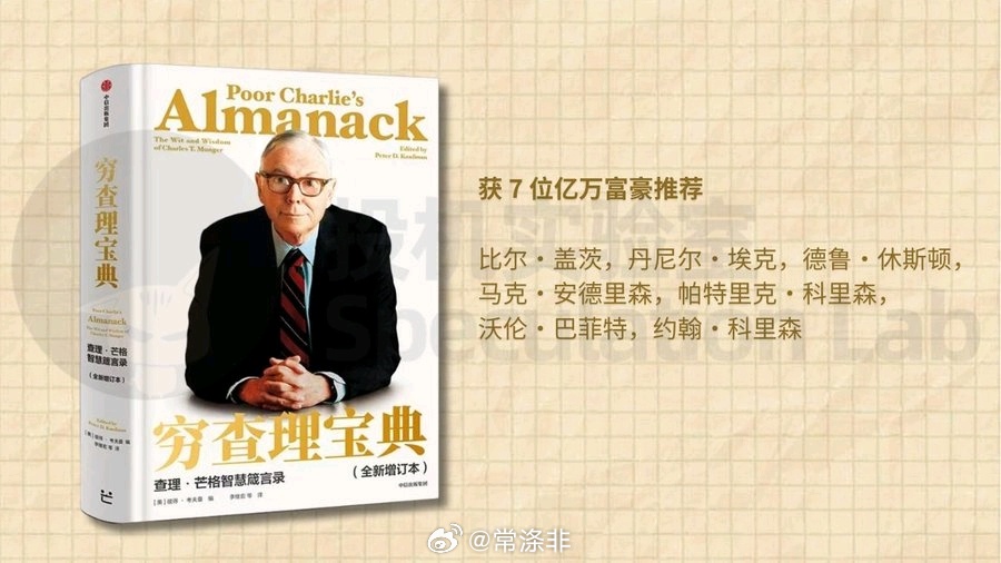 芒格思考学习的方式及其广博,对探索世界也始终怀有激情,书里有他提给年轻人的人生建议,有他对投资实践的评断,有他对可口可乐生意作出的商业分析,有他独创的多元思维模型,以及他总结提炼的人类误判心理学,非常值得一读。