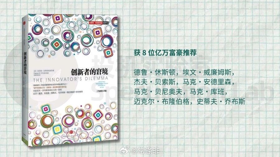 作者在书中分析了计算机,汽车,钢铁,零售等多个行业的创新模式,和大量企业的成败经验,提出了著名的破坏性创新理论,和企业必须牢记五大原则,绝对是一本读完会让人重新审视商业逻辑的经典之作。