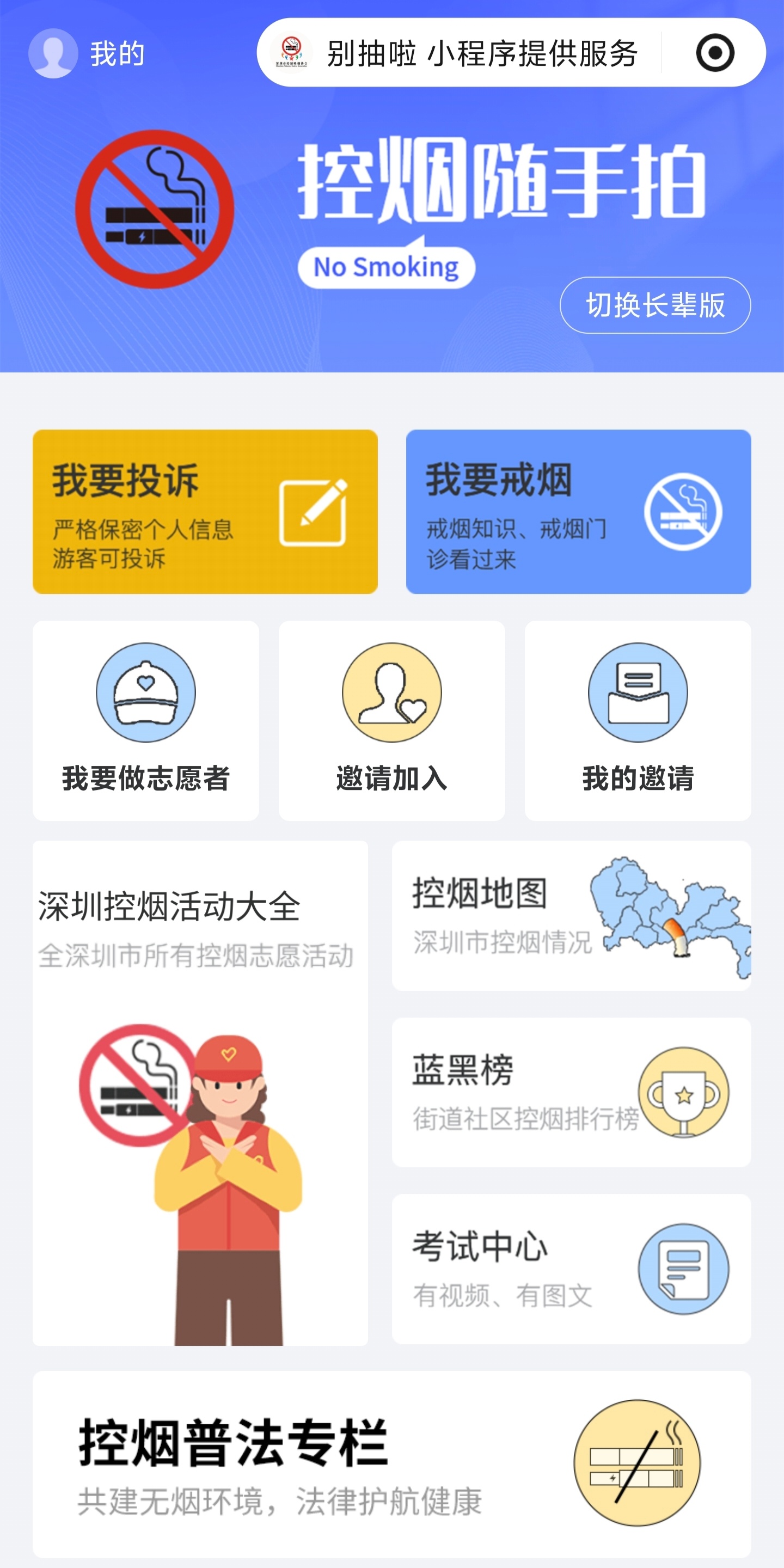还上线了「别抽啦」小程序,支持路人随时投诉在禁烟区抽烟的人。
