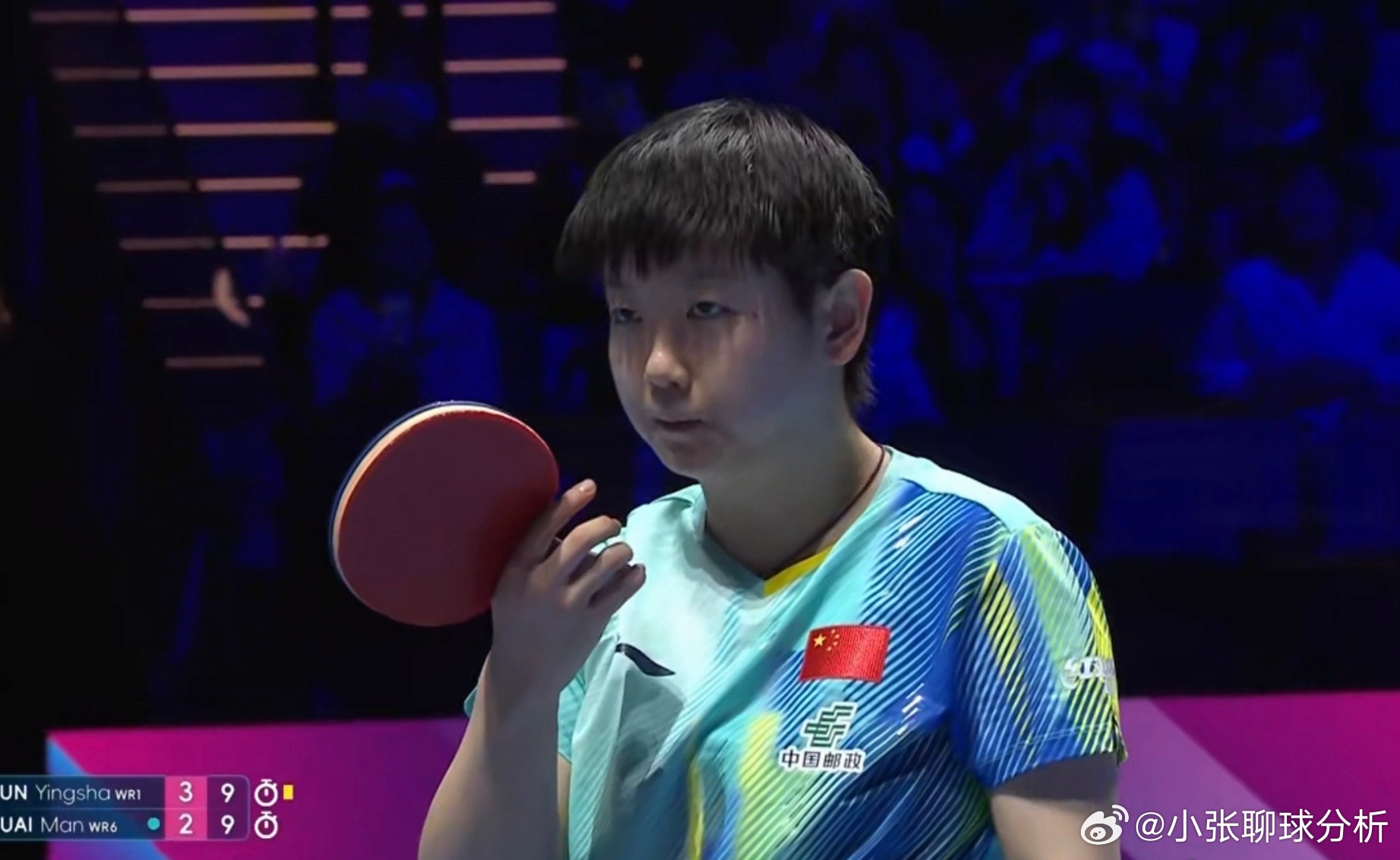 首局比赛,蒯曼迅速进入状态,凭借近台快攻和精准的线路控制,以11-9先下一城,抢占先机。第二局孙颖莎及时调整战术,加强发球旋转和正手进攻,开局就建立优势,连拿7分,最终以11-4轻松扳回一局,大比分1-1平。