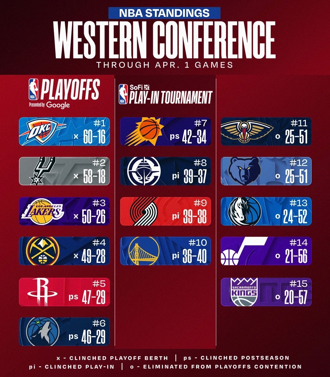 今日赛后排名与签位更新:76人轰出153分大胜奇才,老鹰大胜魔术,凯尔特人大胜热火,国王客胜猛龙,火箭击败雄鹿,马刺客胜勇士。