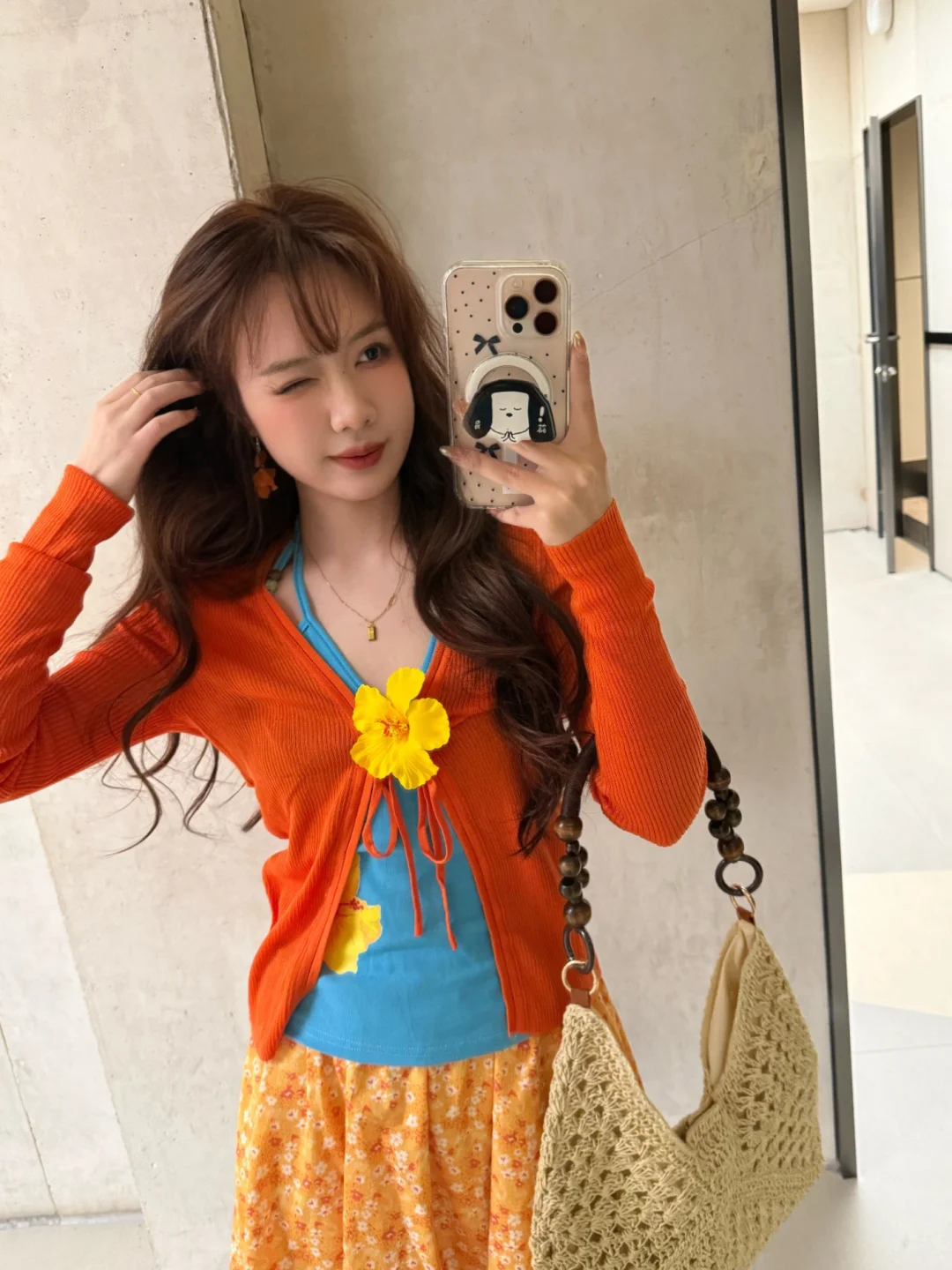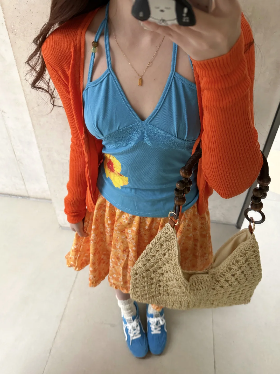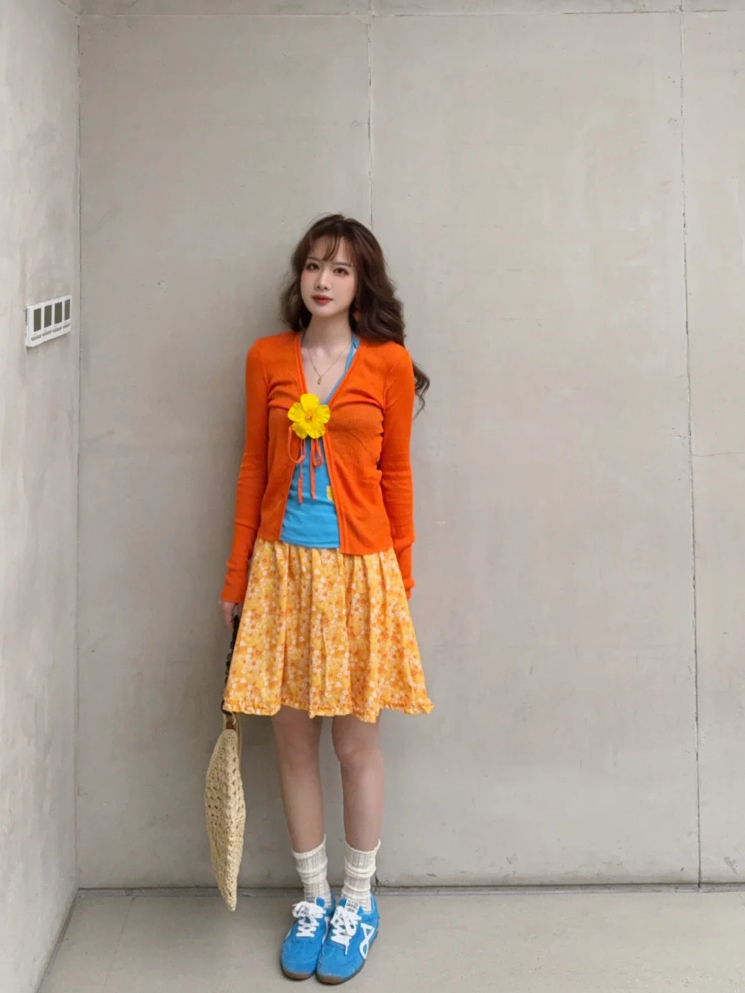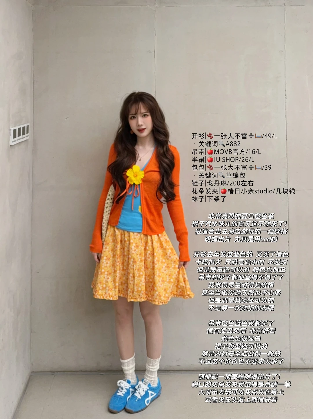 168/105左右 橘色➕孔雀蓝实在是亮眼又显白~ (黄黑皮的姐妹可以穿大面积孔雀蓝小面积橙色) 这套太适合泰兰德了 也很适合马尔代夫啊青岛平潭之类的海边城市 总之 非常适合春夏的一套出游穿搭! 价格也是非常平价的 但是质量其实还好 出去玩为了拍照买点平价衣服没毛病 大家真的可以试试蓝色➕橙色的组合 很有活力的感觉 一下子耳边就响起了🎶 “橘黄色的日落 吞没在海平线” 五一出游就这样穿了!
