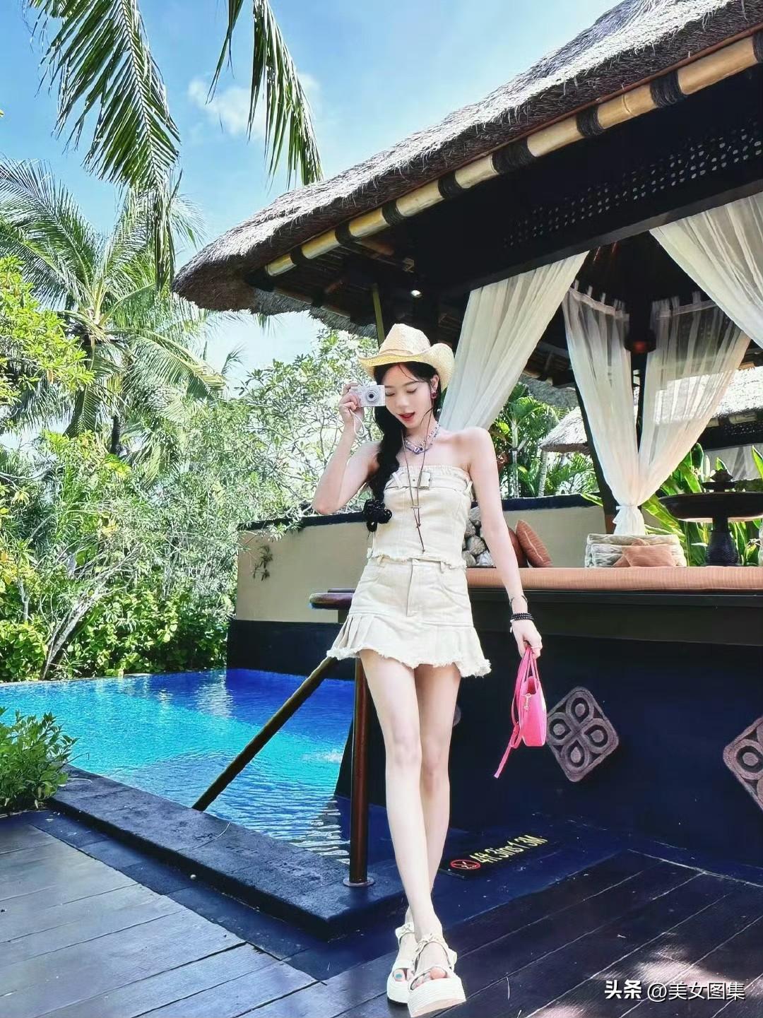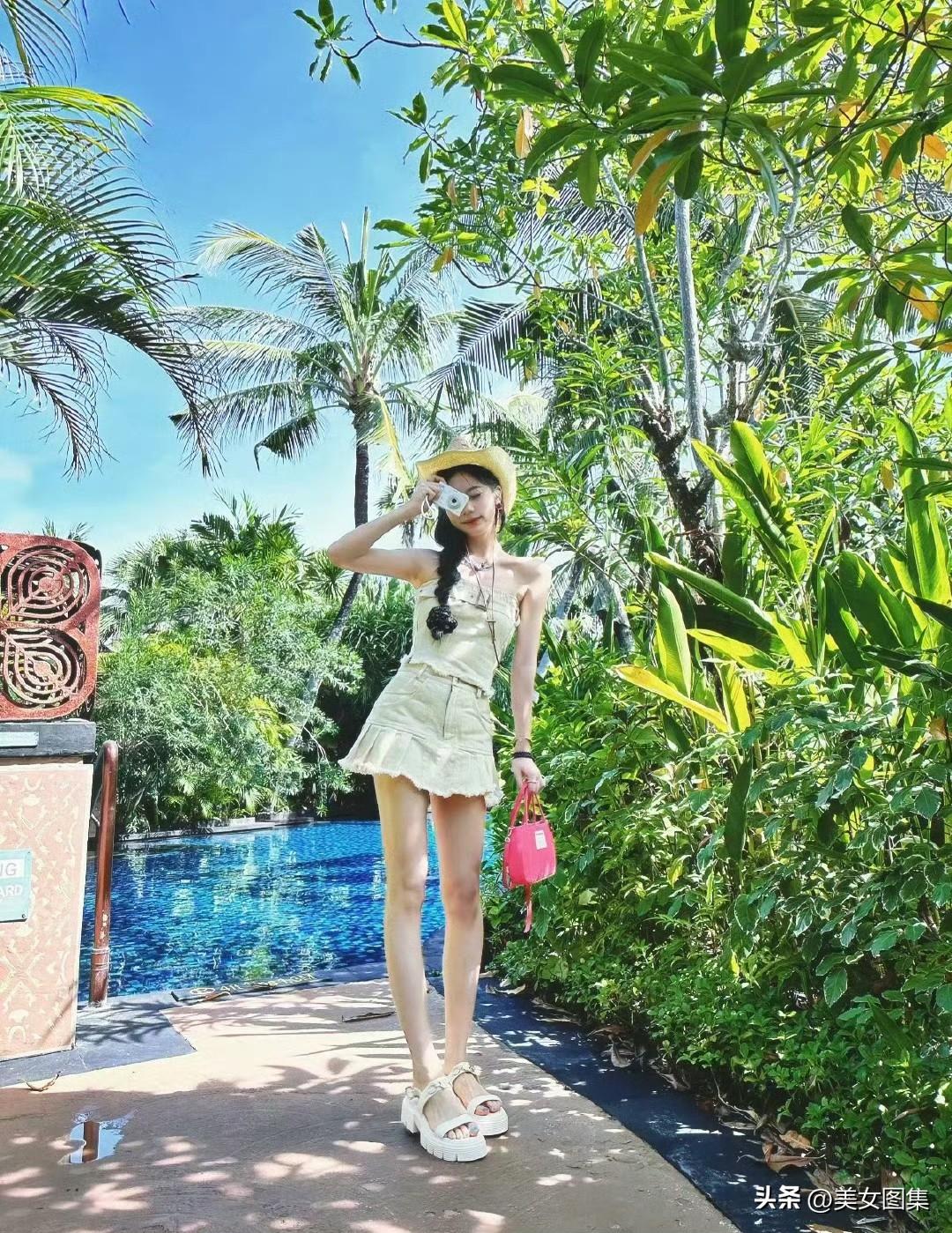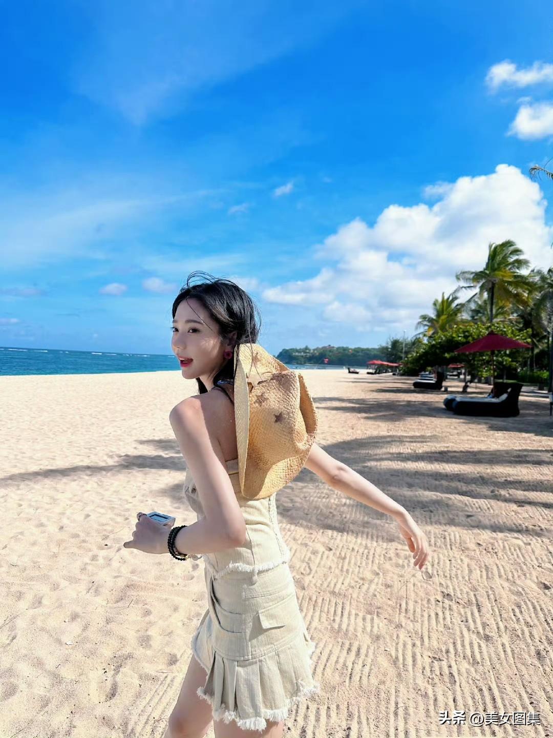 张紫宁沙滩泳装图集,娇俏甜美的小姐姐。碧海蓝天里的张紫宁,娇俏少女感拉满☀️ 阳光、沙滩、碧海蓝天,张紫宁的沙滩泳装写真也太养眼了一身彩虹扎染比基尼,搭配宽檐遮阳帽,清新又元气。身材纤细紧致,曲线超完美,在海边漫步、玩水、自拍,每一张都美得像画报,娇俏甜美又带着小性感,完全是心动的感觉!张紫宁 沙滩泳装美女比基尼 明星穿搭