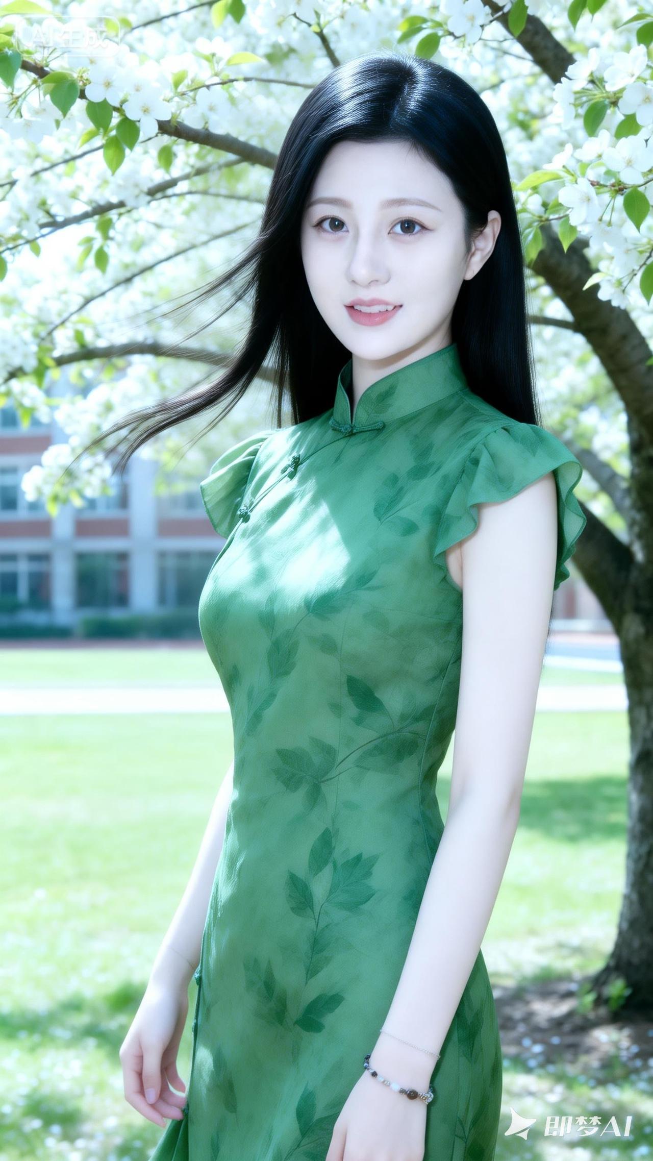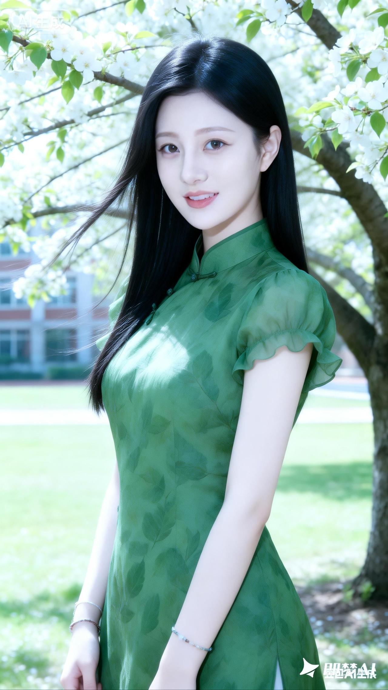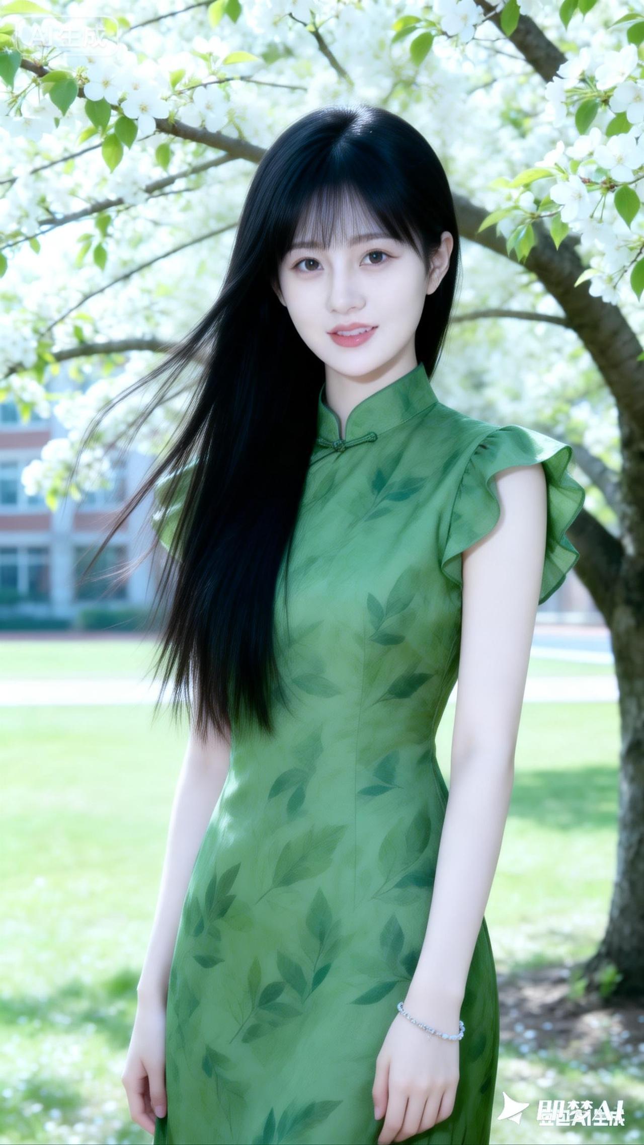 春日绿意盎然,少女清新脱俗