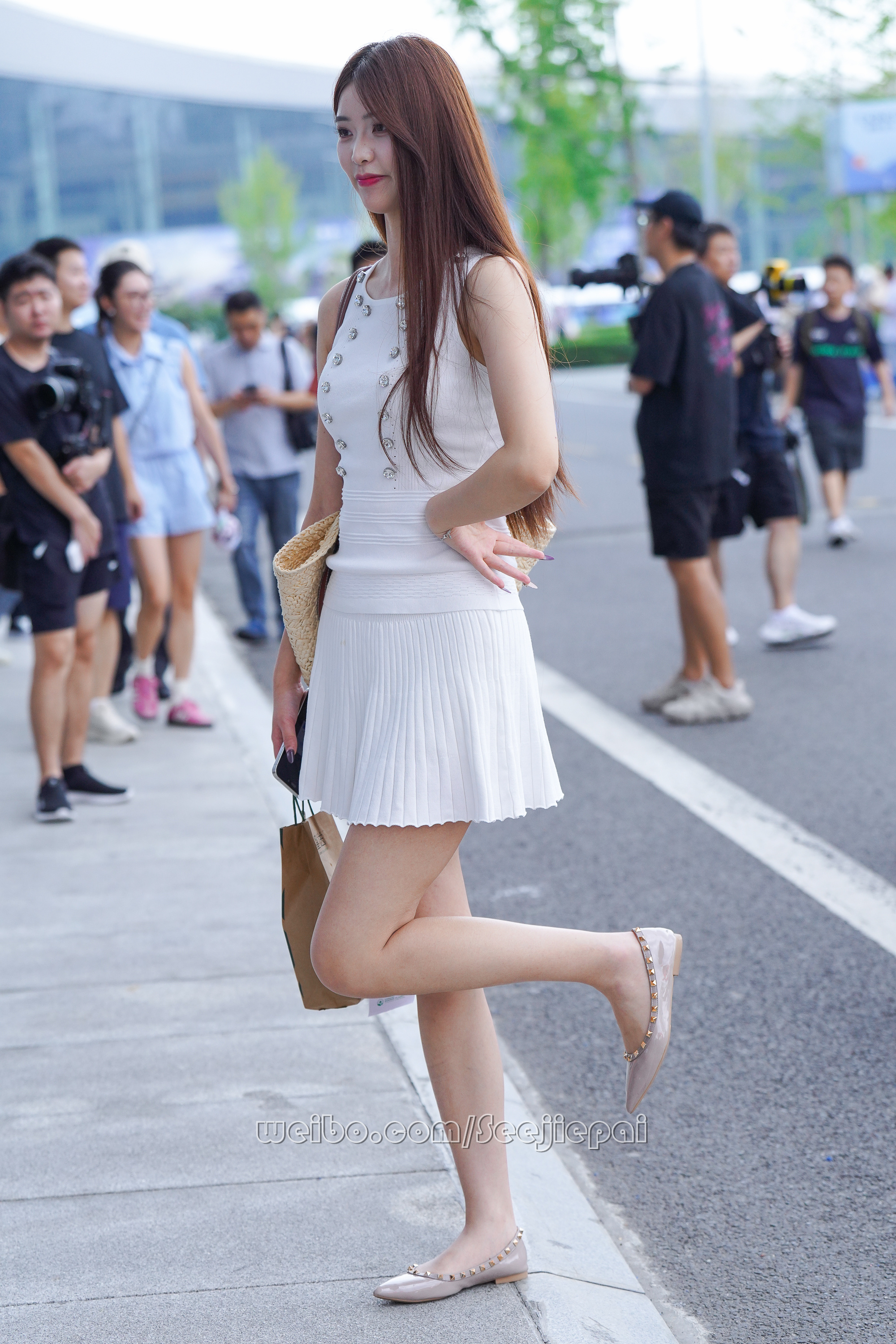 一袭长裙的御姐型美女,那气场简直绝了。就说穿搭,黑色丝绒包臀紧身长裙配黑色缎面吊