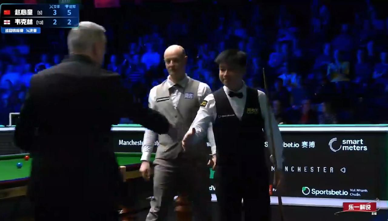 生日夜,胜利夜!赵心童5杆过百,10:4大胜韦克林晋级4强,祝贺赵心童29岁生日快乐!半决赛对阵巫师。 2026赛季斯诺克巡回锦标赛,中国名将赵心童迎战克里斯.韦克林。 第一阶段,赵心童2赶过百(103,120),5:3领先。 第二阶段,在今日凌晨2点开始, 第9局,赵心童单杆70分取胜,大比分6:3 第10局,韦克林单杆71分追回1局。6:4 第11局,韦克林本来先上手,拿到5分,但是打丢简单红球,成为全场转折点,是最致命失误,赵心童单杆134分取得胜利。 第12局,韦克林再次失误,赵心童108分8-4领先进入第二阶段中场休息。 第13局,赵心童顺利拿下,9-4拿到赛点。 第14局,赵心童单杆101分,10-4比赛结束。 全场比赛赵心童5杆过百,韦克林全场被压制没有单杆过百。也算是遭8连鞭淘汰小弟吴宜泽找回了面子。 赵心童本赛季单杆过百73杆,位列第一。 半决赛赵心童的对手是老巫师,希金斯10:8塞尔比晋级。