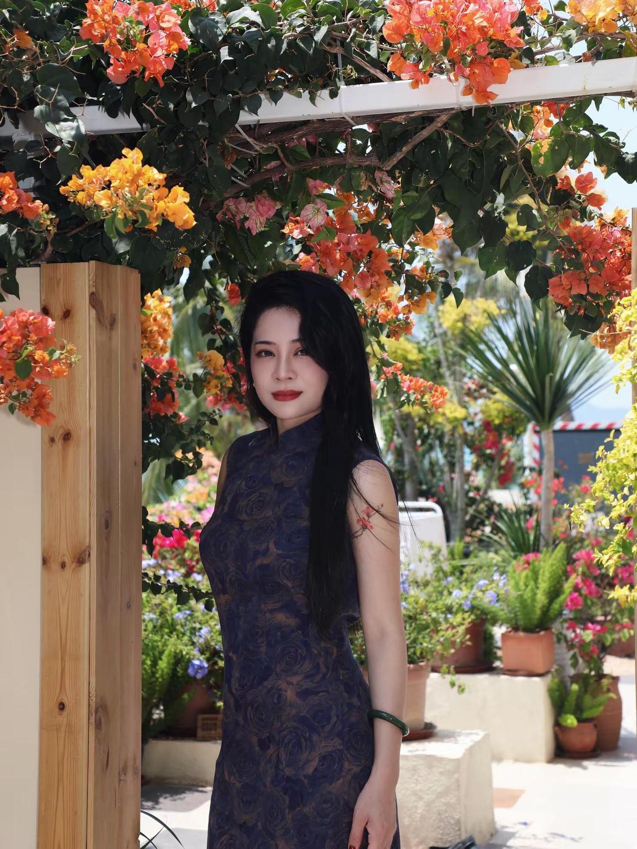 端庄稳重的美女一身简约黑色旗袍穿搭,温柔大气得不行,笑容灿烂又治愈,尽显知性优雅