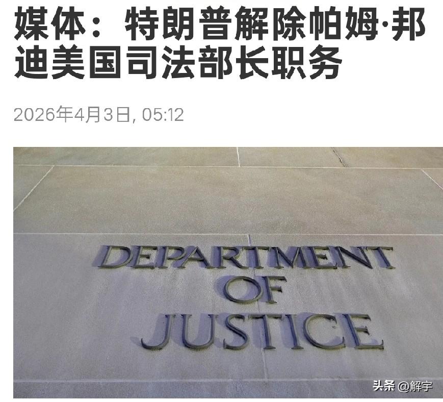美国媒体刚刚报道了一则震动美国朝野的新闻,特朗普解除了帕姆·邦迪的司法部长职务!该消息最初是由特朗普在社交媒体上公布的布,随后被美国众多媒体转载刊发,引发热议,因为这是特朗普这届政府首次解雇部长级高官且不再任用,可见特朗普对邦迪已经由重用转为失望。因此,美国媒体分析认为,这就是特朗普在报复邦迪,因为她在此前处理爱泼斯坦案案卷的方式没有维护住涉特朗普的信息,导致特朗普陷入舆论旋涡!