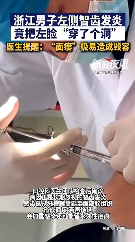 宁波一个大哥,脸上突然多了个洞。 不是磕的,不是碰的,就是一个小坑,还往外滋滋冒着脓。他对着镜子拿棉签一碰,疼得半边脸都抽了一下,赶紧捂着脸冲去了医院。 他以为是长了个什么怪东西。 结果医生把他按在椅子上,灯光一照,手套一戴,轻轻按了按那个洞口周围,一句话就把他问住了:“你左边那颗智齿,是不是经常发炎?” 大哥点点头,说好几年了,每次疼就吃点消炎药,扛两天就过去了。 医生没再说话,直接指了指刚拍出来的片子。那根歪着长的智齿下面,一条黑乎乎的线,像一条小蛇,已经钻穿了骨头,从牙根硬生生在脸上打了个“隧道”。 所谓的洞,就是这条隧道的出口。 “面瘘。”医生把片子往灯箱上一挂,“你那点消炎药,顶多是把路口的火给灭了,可人家地道都挖到你脸上了。再拖一阵子,脸上这个洞就永久焊在这了,神仙也补不回来。” 大哥坐在椅子上,半天没动,手下意识地摸了摸自己那张还算平整的右脸。 所以说,身体给你发信号的时候,到底是硬扛过去显得自己“强”,还是赶紧认怂去处理,才算是真聪明?