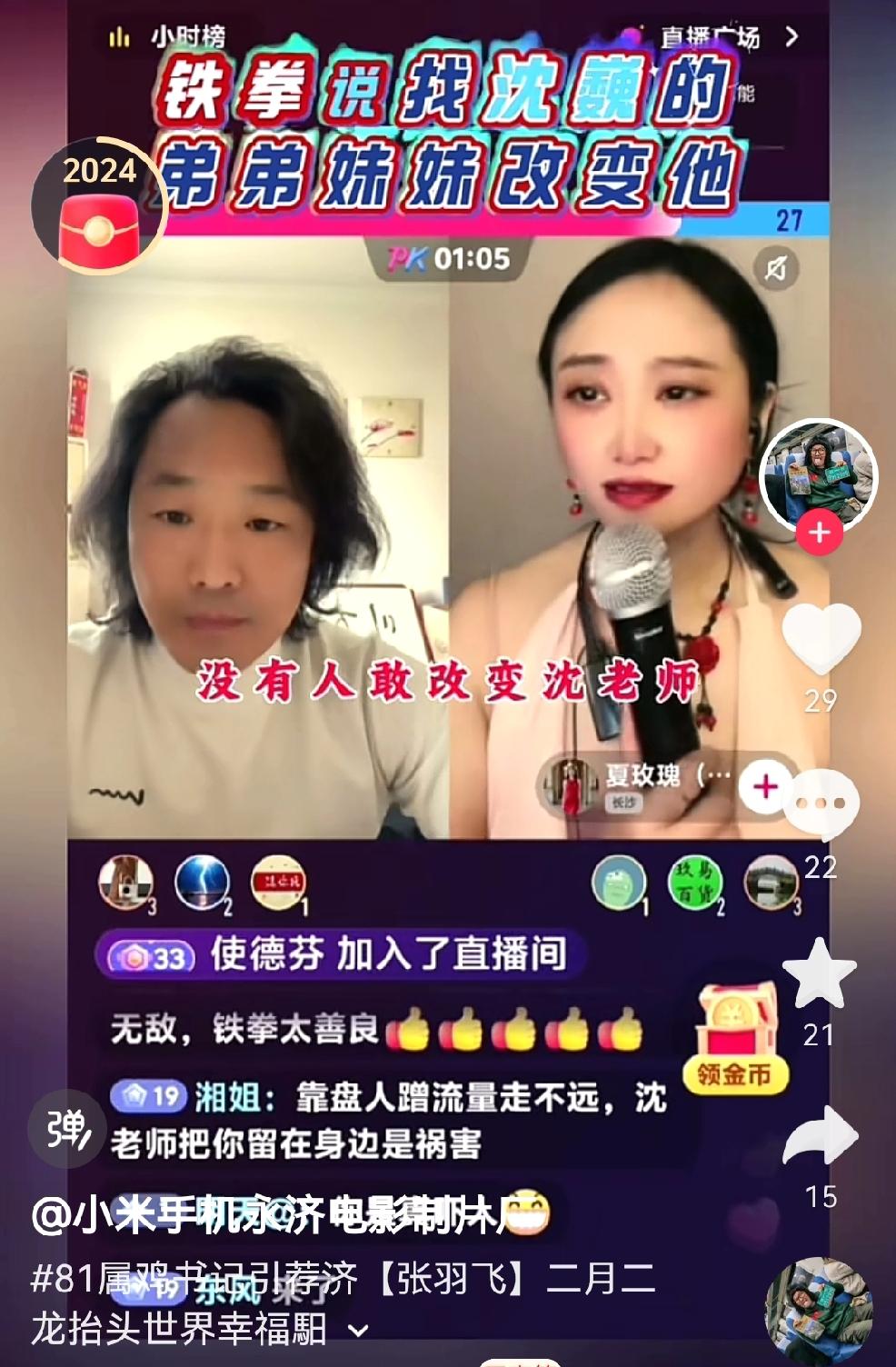这个铁拳有点走火入魔了,在直播间扬言要改变老师沈巍,他说他不改变沈巍老师,老师的段位永远上不去! 看到这个我都惊呆了,一个段位低的人说要改变一个段位高的人让他提高档次,这话你信吗?你敢信么? 一个人最悲哀的就是妄自尊大不自知,他这样自己都没活明白,居然想着去提高别人,天天盘人上瘾。还有联系沈巍的弟弟妹妹,这不是打沈巍老师的脸?人家沈巍本来就和家人不和,他怎么想到要去联系人家弟弟妹妹,这不纯恶心人吗? 估计沈巍现在想到铁拳就像吞了一肚子苍蝇一样,这都什么事?人家沈巍都直播连线和他结束来往了,他还厚着脸皮老师老师的喊着!沈巍先生如果正在吃饭,听说他要联系弟弟妹妹来改变他,估计一怒之下会忍不住把饭桌给掀了!简直莫名其妙!