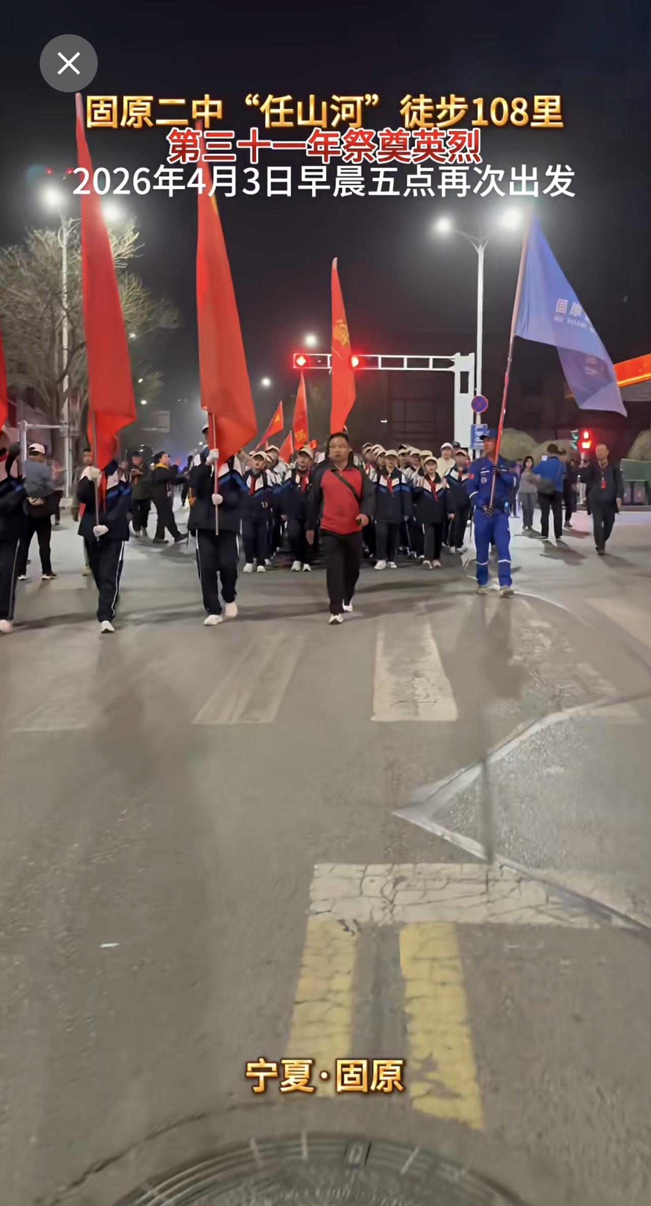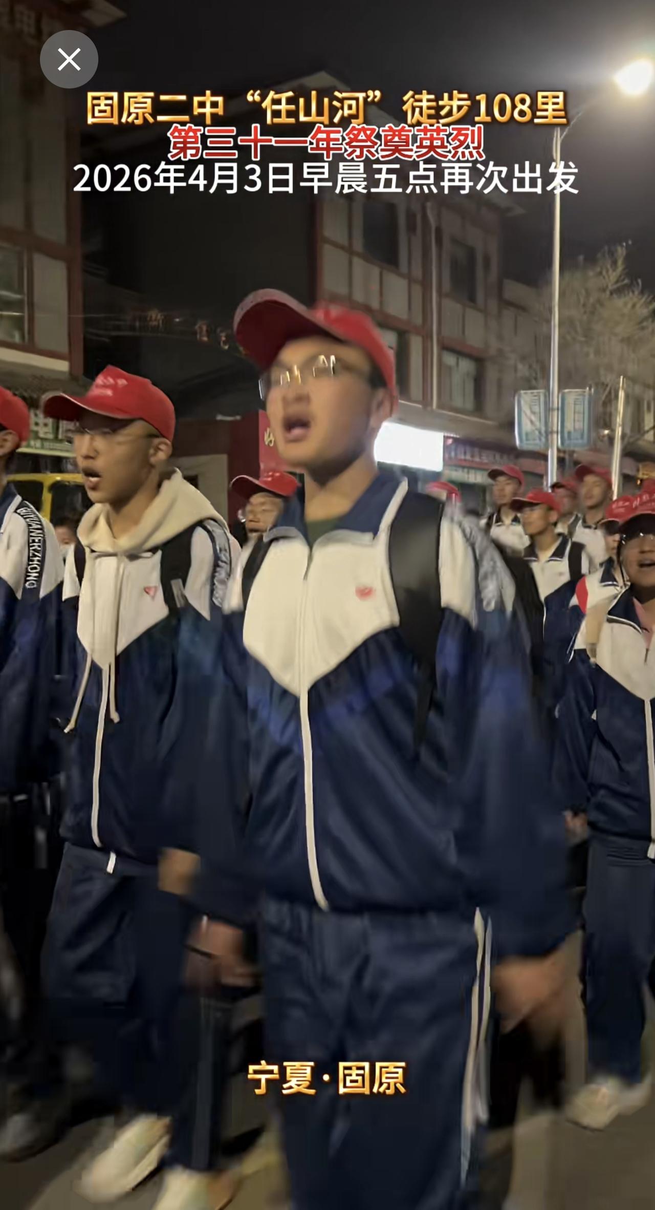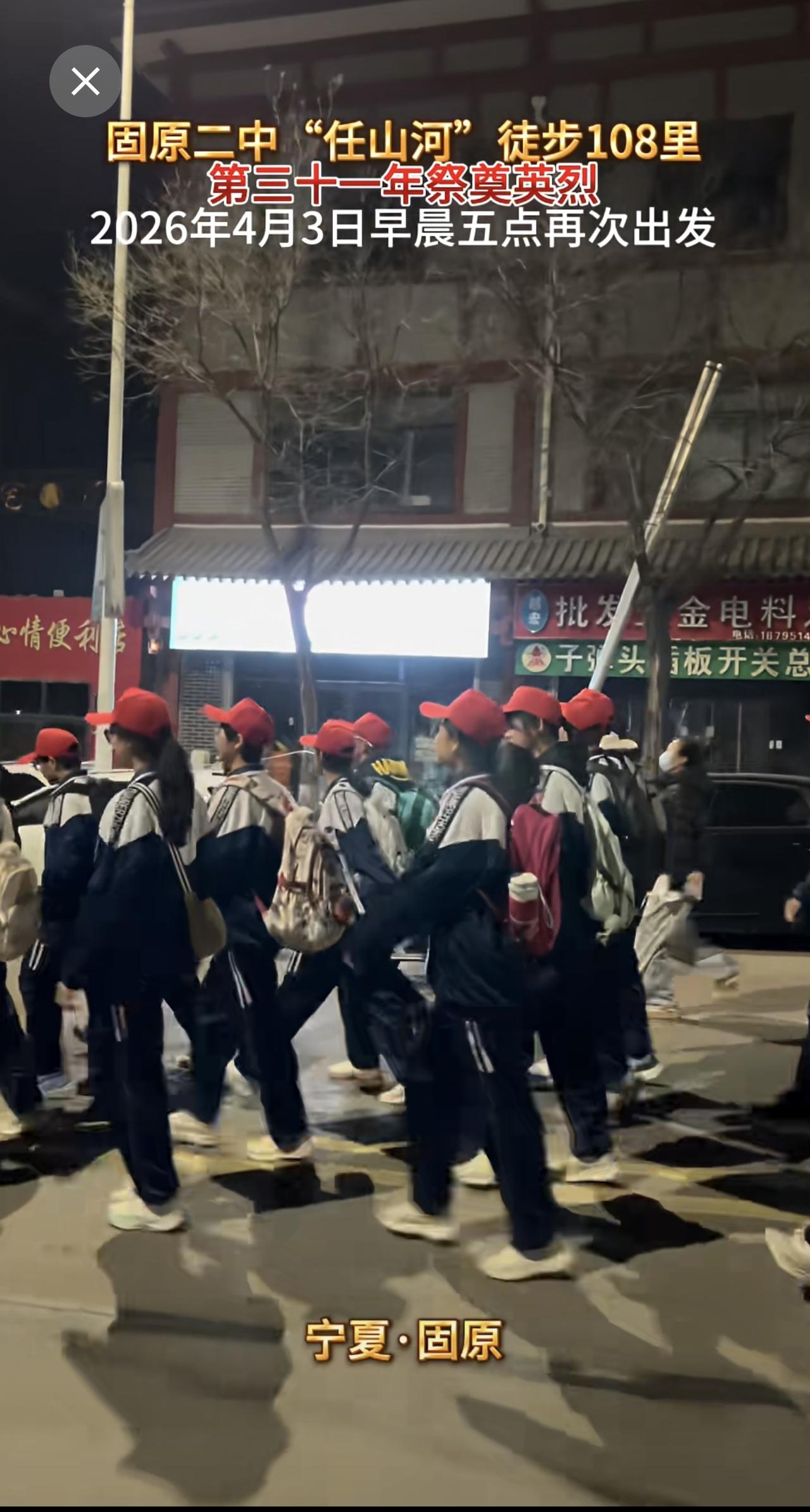 固原二中师生,第三十一年徒步108里“任山河”祭奠英烈,4月3日清晨5点出发。任