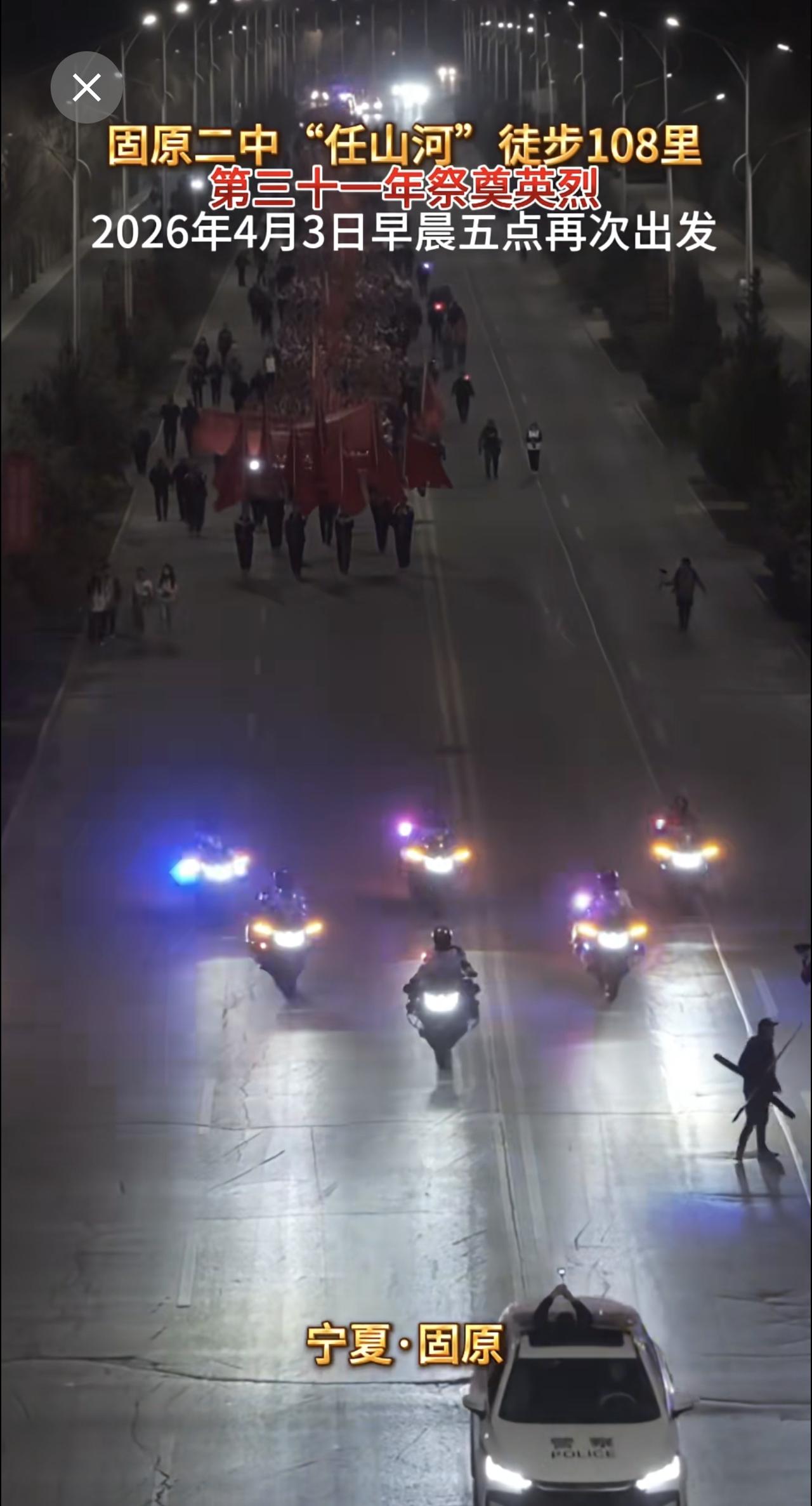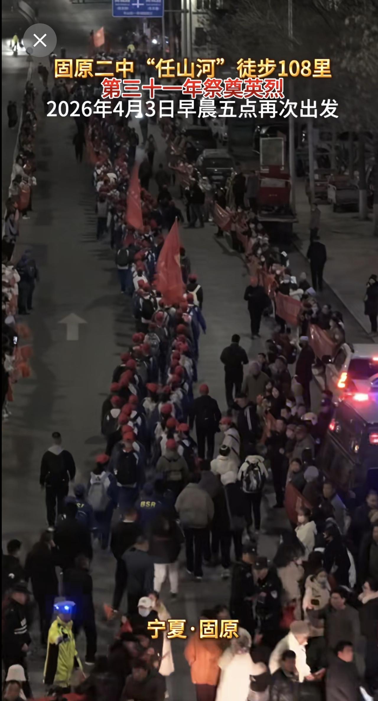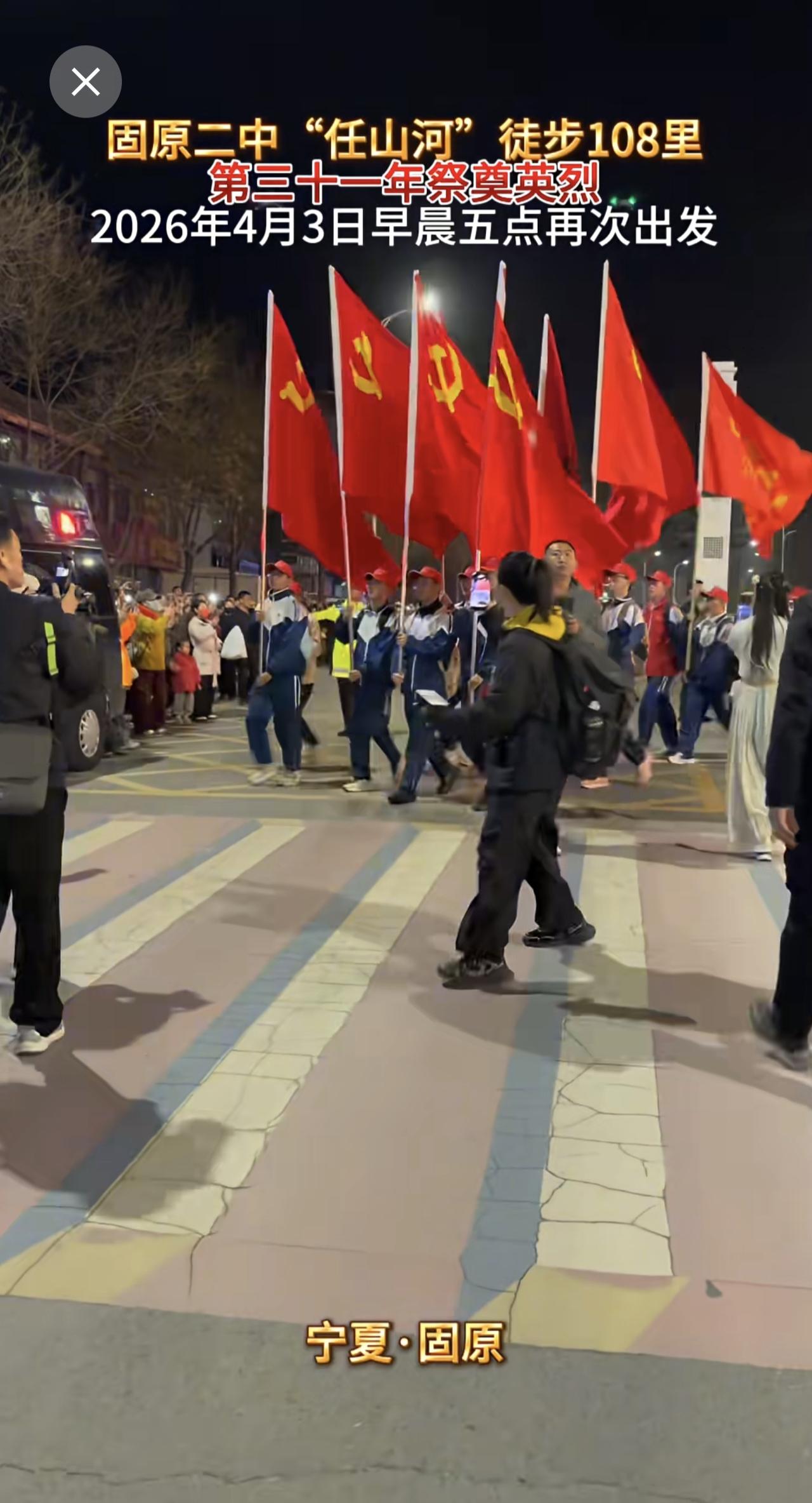 固原二中师生,第三十一年徒步108里“任山河”祭奠英烈,4月3日清晨5点出发。任
