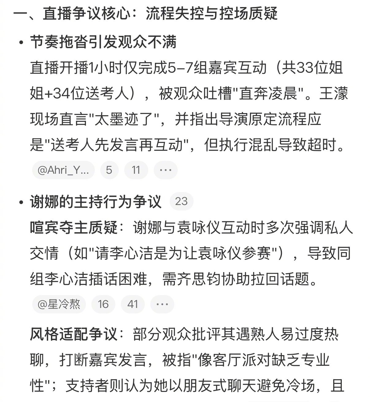 谢娜浪姐直播被吐槽太墨迹,控场与主持能力遭质疑。谢娜发微博回应,流程什么时候推进