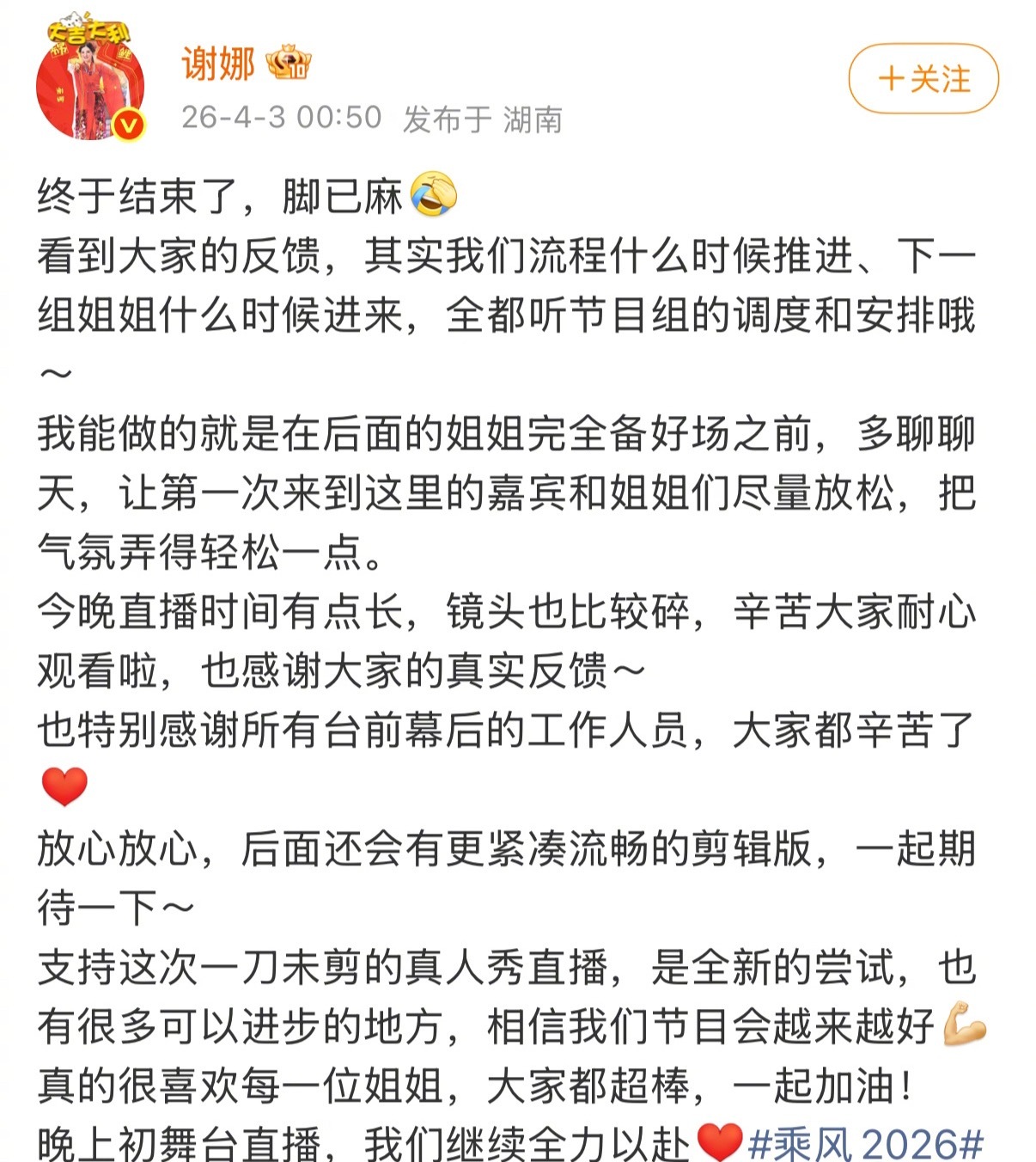 谢娜,翻车了!4月2日晚上,《乘风2026》刚直播,谢娜就翻车了,全程尬聊事小,