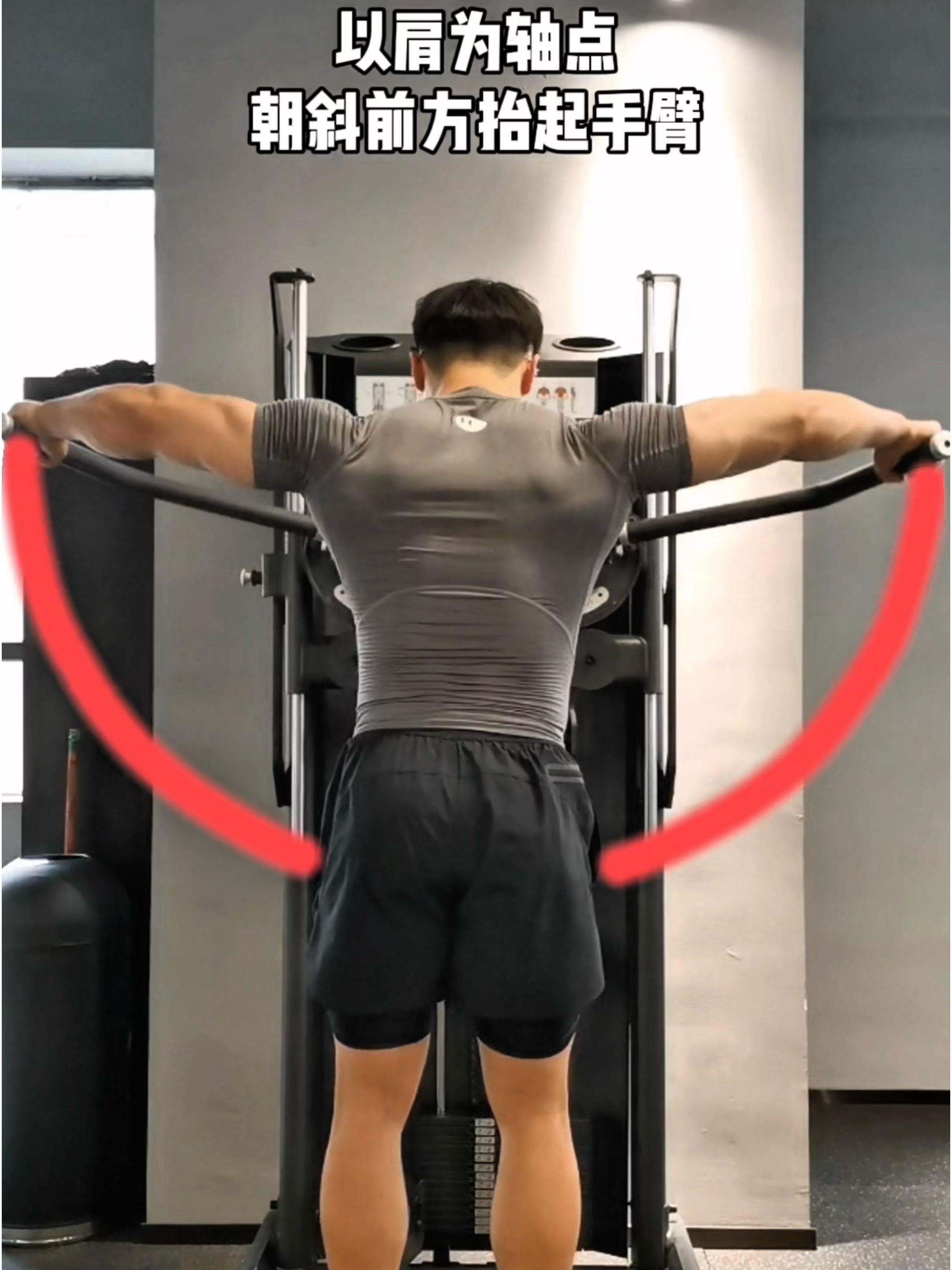 器械站姿飞鸟,保姆级教程! 一、目标肌群 器械站姿飞鸟,肩中束 二、练...