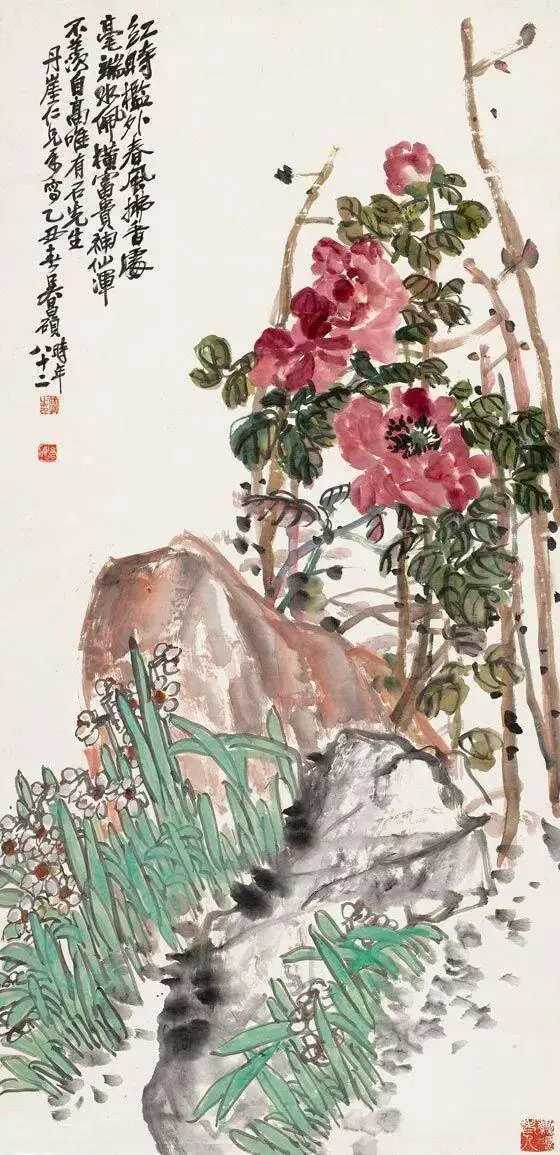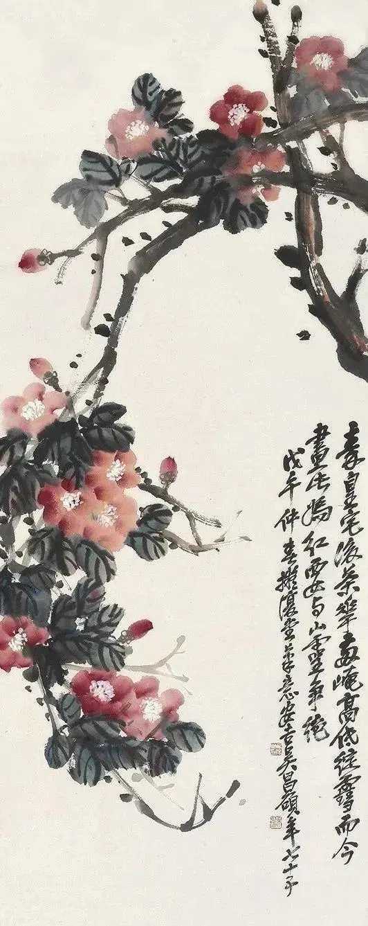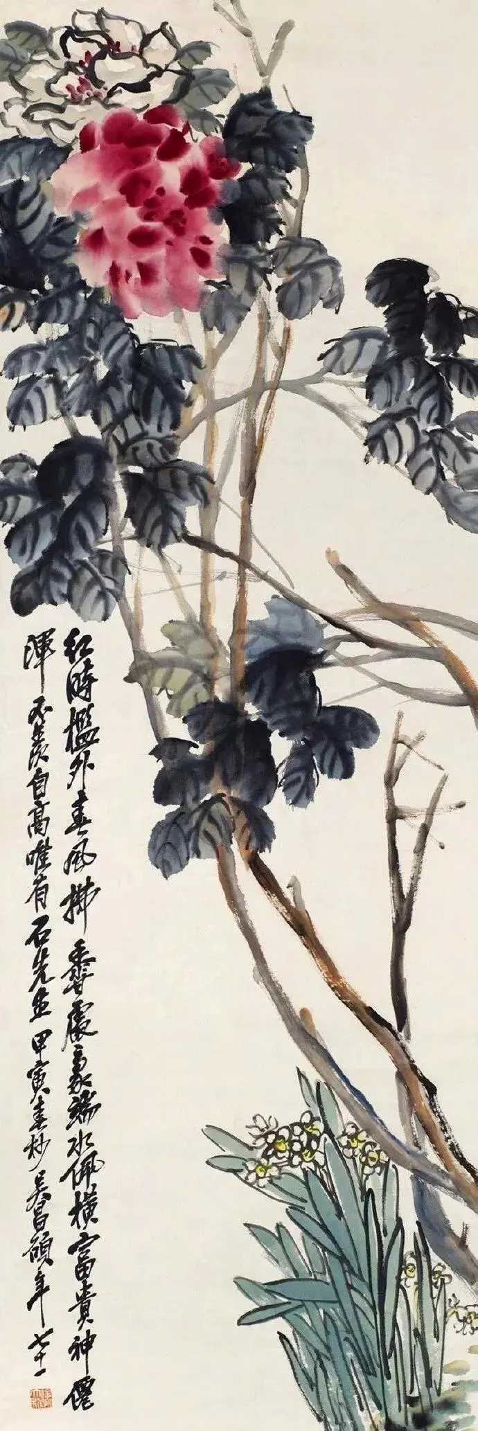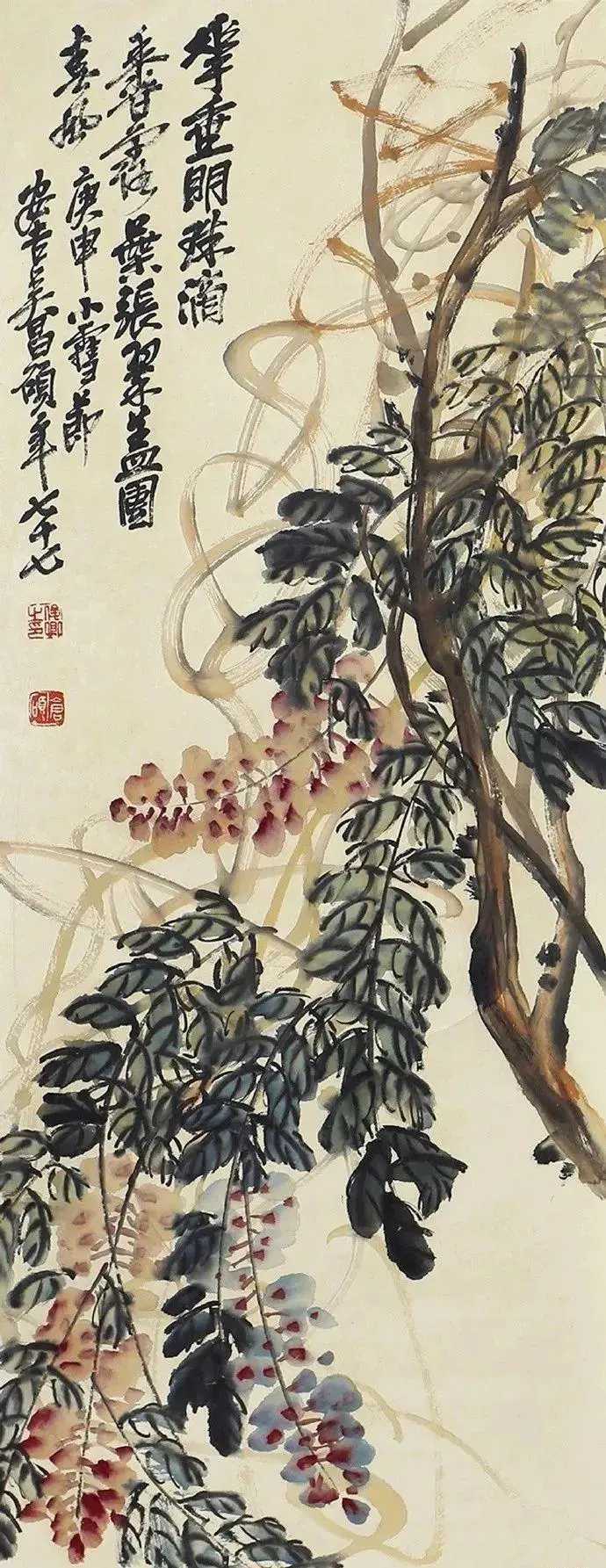 吴昌硕花鸟。吴昌硕先生之所以能成为吴昌硕,很重要的一个原因就是他跟随朴学大师俞樾学了7年,这是吴昌硕先生区别于其他书画家的一段重要经历。他的文学、经学、古文字学等基础非常扎实,有了这样的底子,就是有了我们之前所说的“本”,本立道生,有根有本,才能显出来。书法、篆刻都是这样显出来的学问。吴昌硕先生7年可贵的朴学经历,成了成就他一生的根本;有了这个根本,他的书法、篆刻、绘画才这样与众不同,他的“气象”发乎心,他无形的学问养于心。这就是中国风遇见艺术