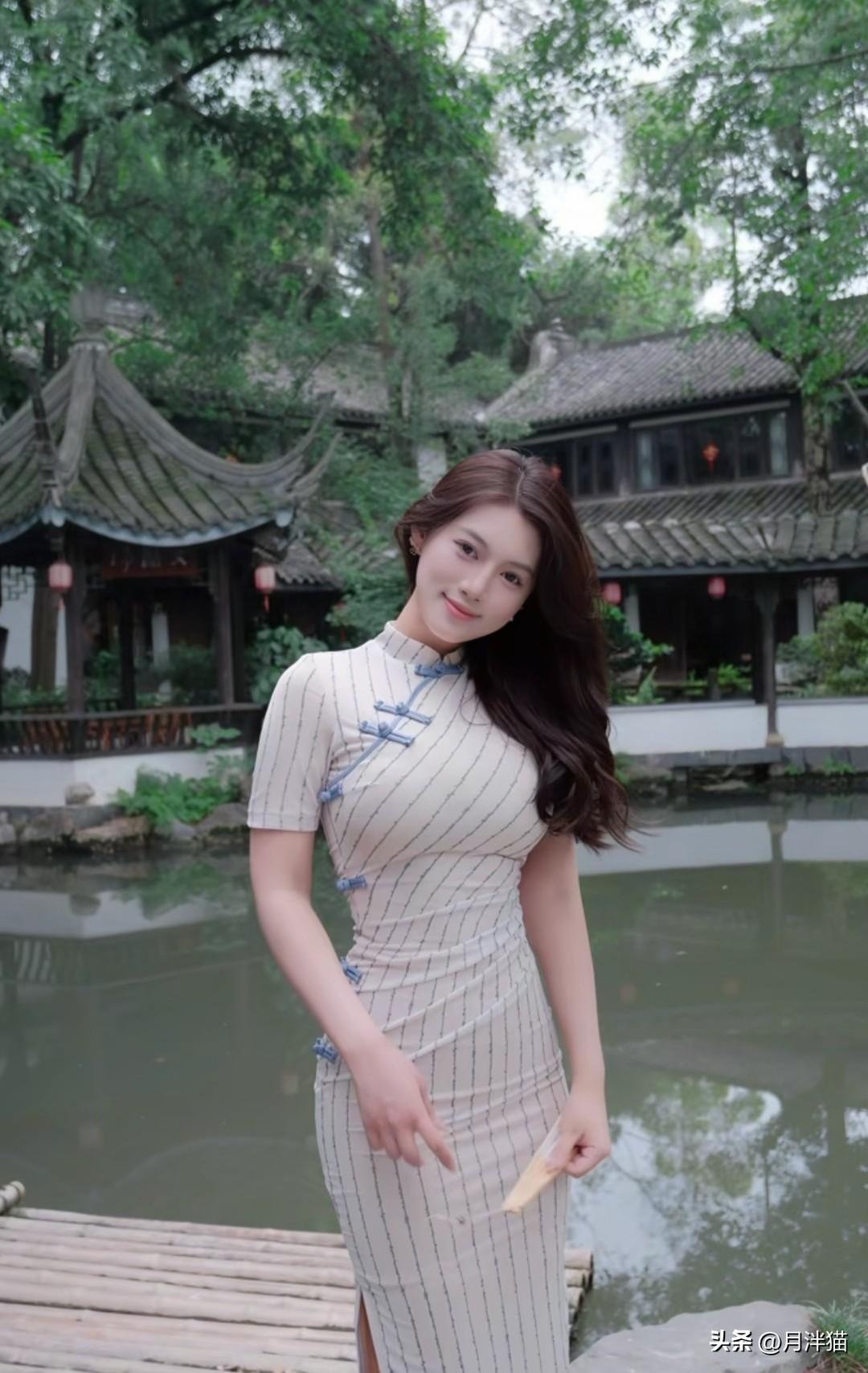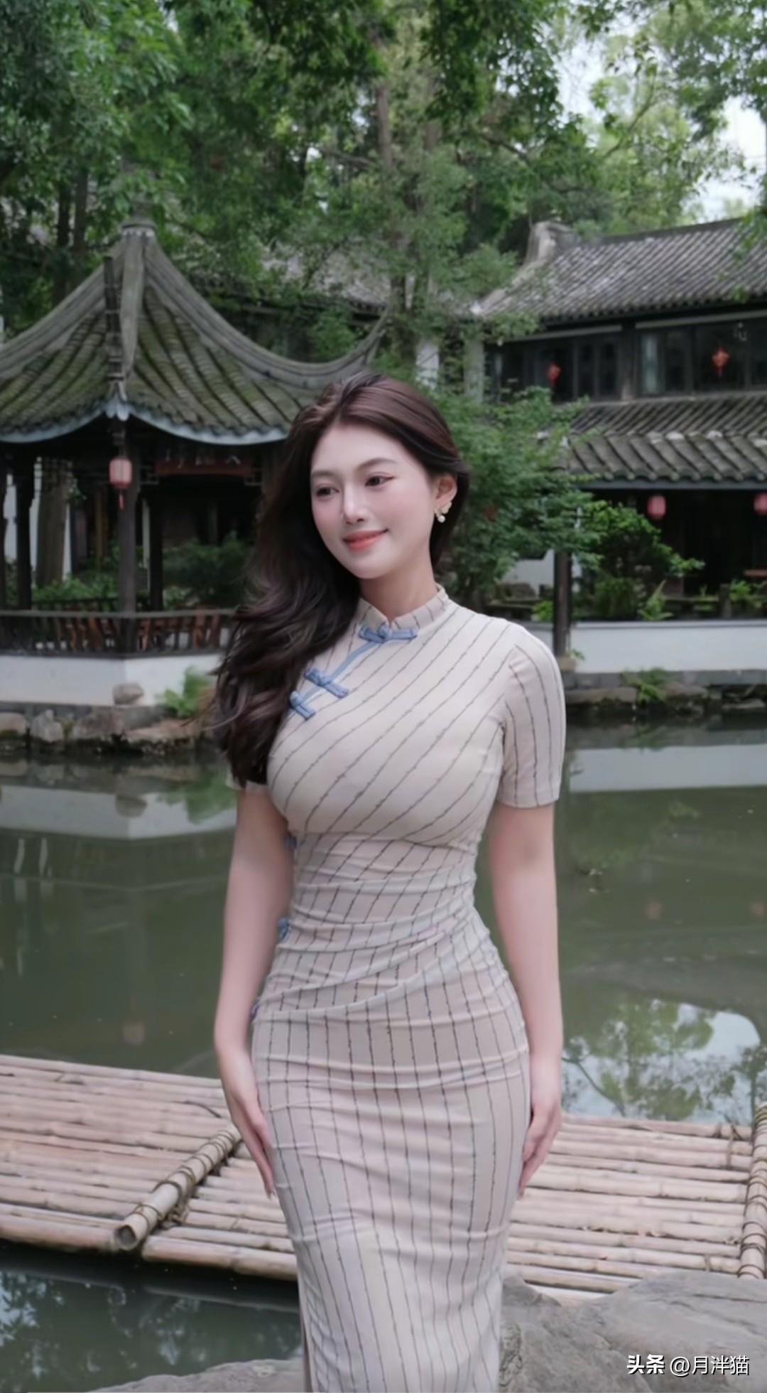 于公园河畔邂逅这般美景,恰似一场视觉的饕餮盛宴。佳人身着一袭优雅的条纹旗袍,每一处剪裁皆贴合身形,将女性的曼妙曲线展现得淋漓尽致。条纹元素的融入,更为旗袍添了几分简洁与利落。 公园河边绿意葱茏,嫩绿的枝叶随风轻舞,与佳人身上的旗袍相得益彰。她步伐轻盈,举手投足间尽显东方韵味。那微微颔首的温柔模样,宛如江南水乡的婉约诗篇。旗袍的古典与自然的清新完美交融,让人不禁喟叹,这世间美人和旗袍的搭配,着实不可辜负,仿佛时光在这一刻凝固,只余下这绝美的画面。 图片来源于网络,侵权删。