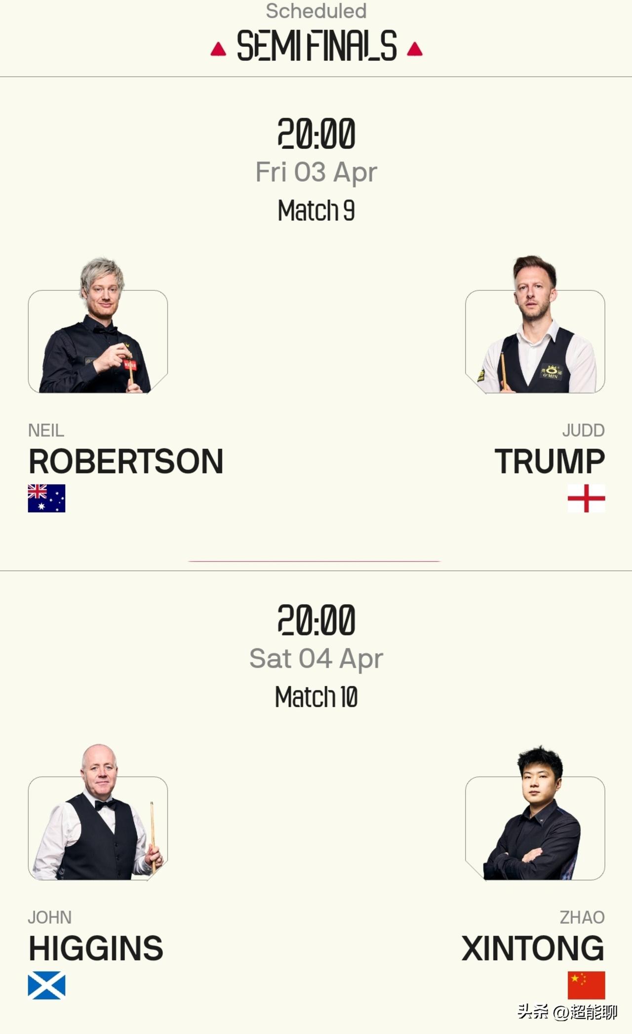 随着巡回锦标赛4强名单出炉,全世界斯诺克球迷都期盼着决赛看赵心童vs特鲁姆普。因为这两位以前从未在决赛碰过面,萝卜和巫师本赛季都和赵公子在决赛打过了,现在就差小特了。 真没料到巫师在5:8落后塞大师的情况下还能翻盘,更没料到是5连鞭翻盘。昨天希金斯几乎每一颗球都打得特别认真,第一阶段长台准度逆天,才能勉强压住塞大师。 不过两人这一战双方都是大伤元气,对于赵公子而言是利好的消息。之前对阵希金斯都是后面几局发力,这次希望能在前面就建立优势,与小特会师决赛再创收视率记录。