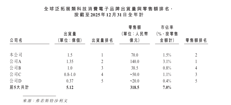 其中,在充电类产品、音视频产品、连接传输类产品以及插入存储类产品等被合称为“泛拓展类科技消费电子”的“老本行”上,绿联科技再下一城:据弗若斯特沙利文数据,2025年,绿联已是该领域的全球出货量最大的公司。