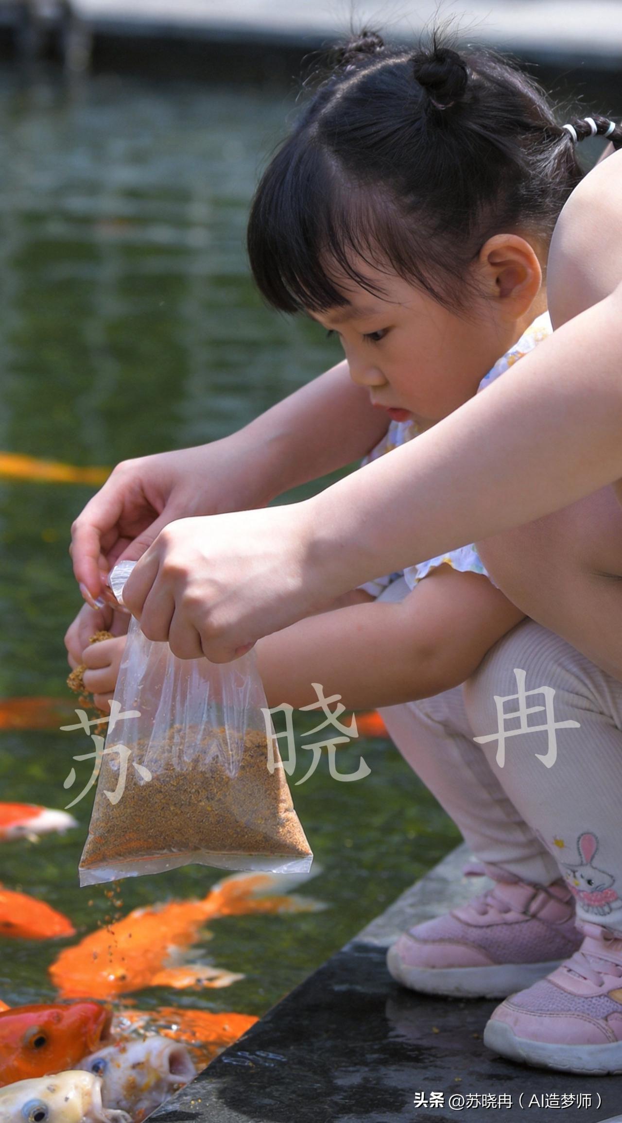 母女同框喂锦鲤,这画面也太温馨了吧!🥰 公园遛娃日常✅ 今天的项目是喂锦鲤! 女儿那认真投喂的小模样,真的把我心都萌化了。她在前面撒鱼食,我在后面护着她,生怕她一不小心栽进池子里。 阳光下,锦鲤游得欢快,我们笑得开心。 所谓的岁月静好,大概就是此时此刻吧。 苏晓冉 亲子日常 锦鲤祈福 原创首发 写实风AI写真