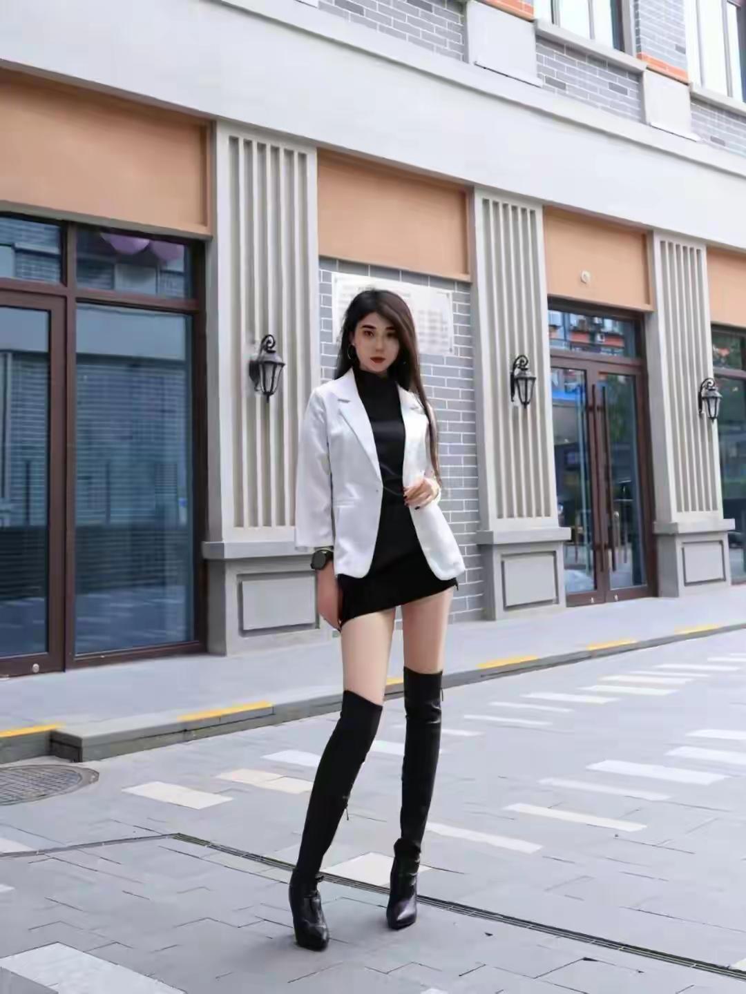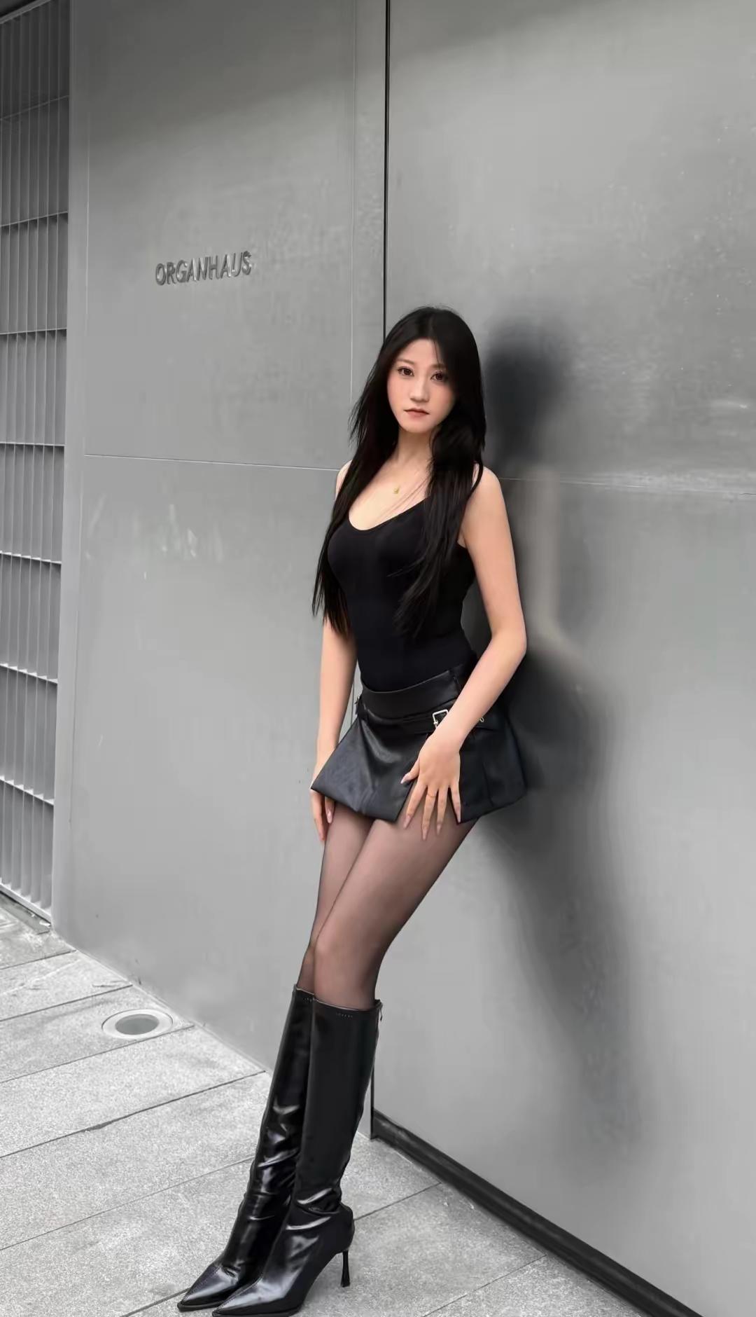 一袭长裙的御姐型美女,那气场简直绝了。就说穿搭,黑色丝绒包臀紧身长裙配黑色缎面吊