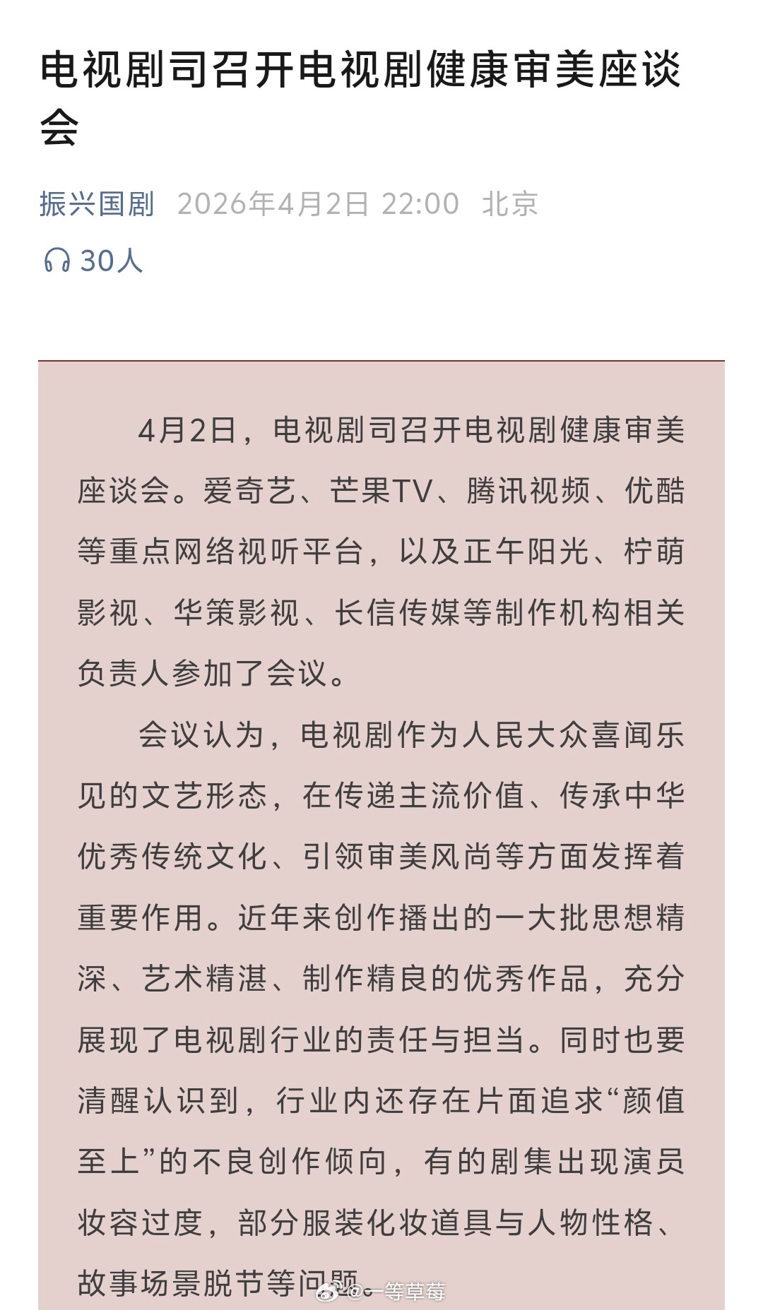 总局:电视剧要避免“颜值崇拜”“流量依赖”
