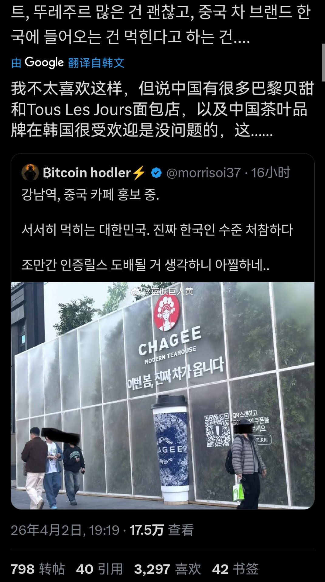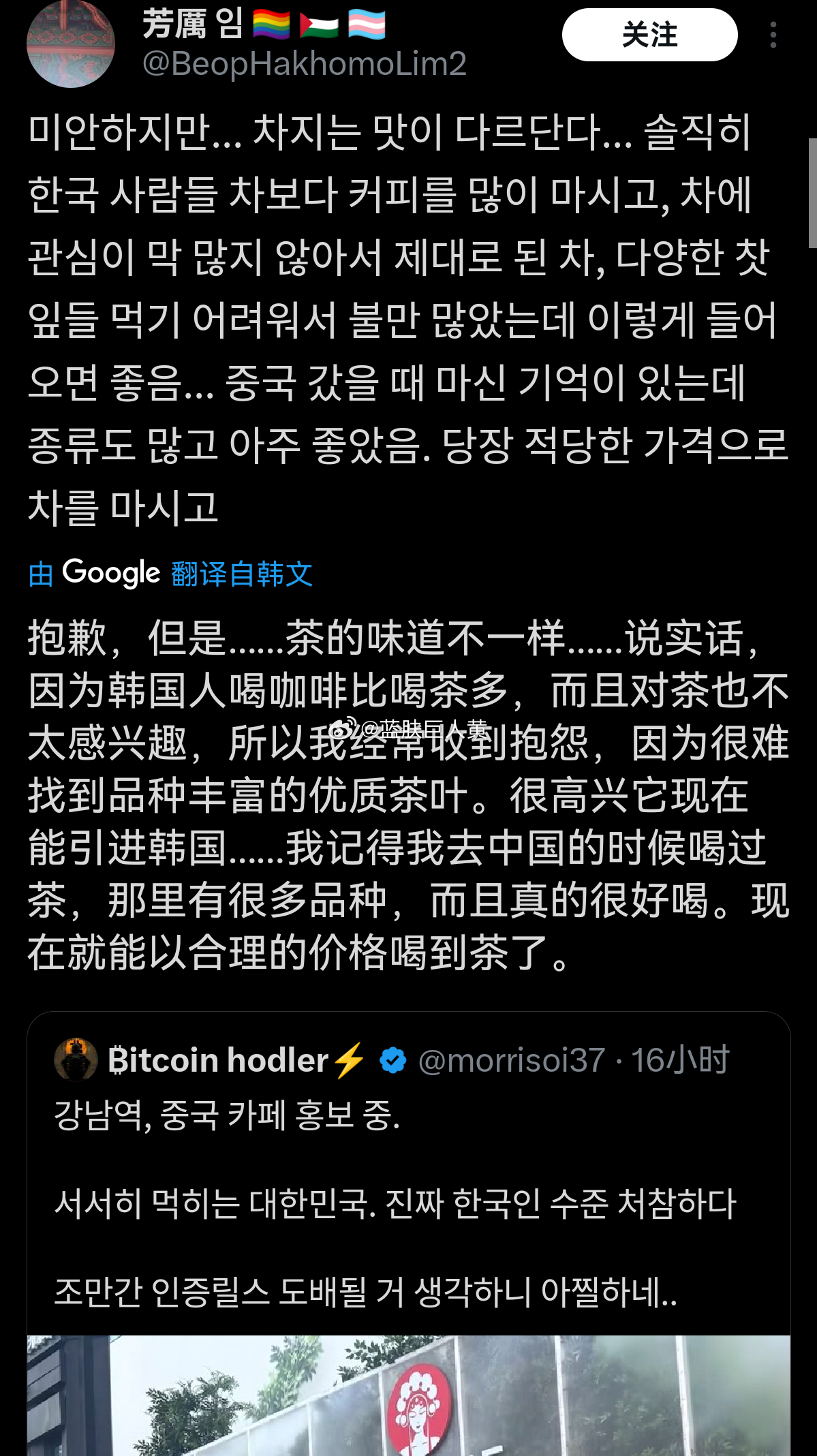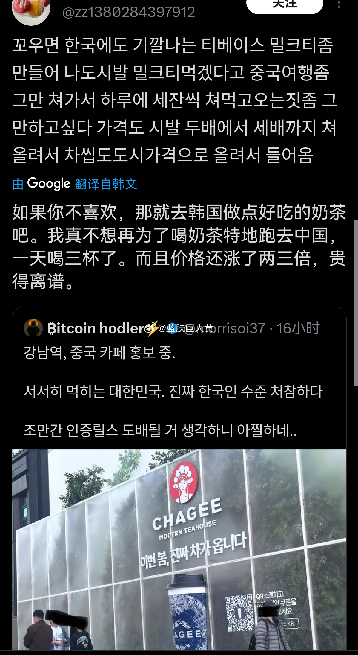 不过爱喝中国奶茶的韩女非常多,所以推特上全是吐槽此贴的韩女