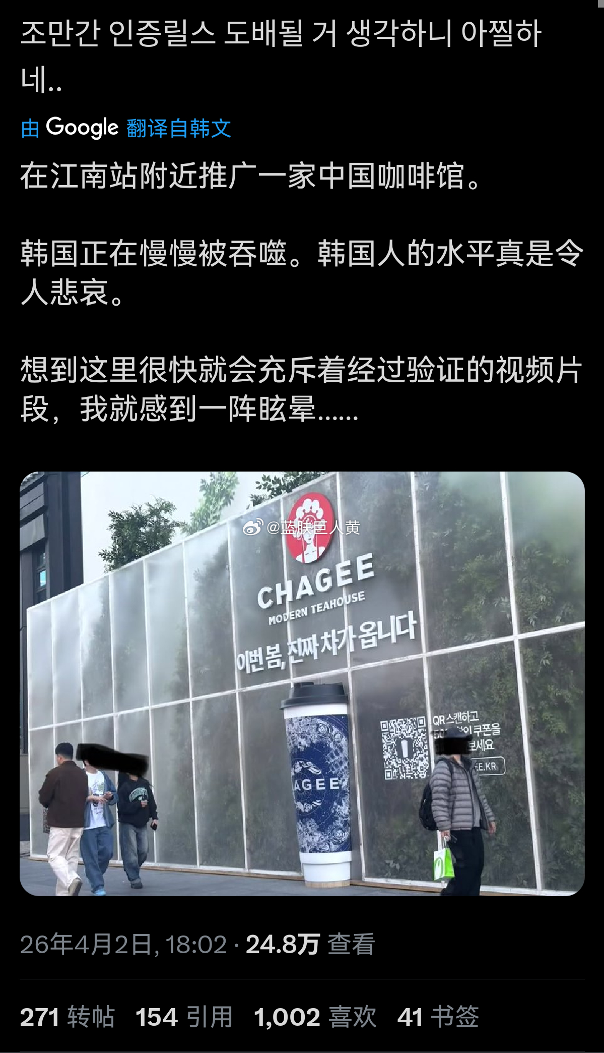 霸王茶姬即将在韩国江南区开业,外网上陆续出现了“韩国即将被中国吞噬”的阴谋论。