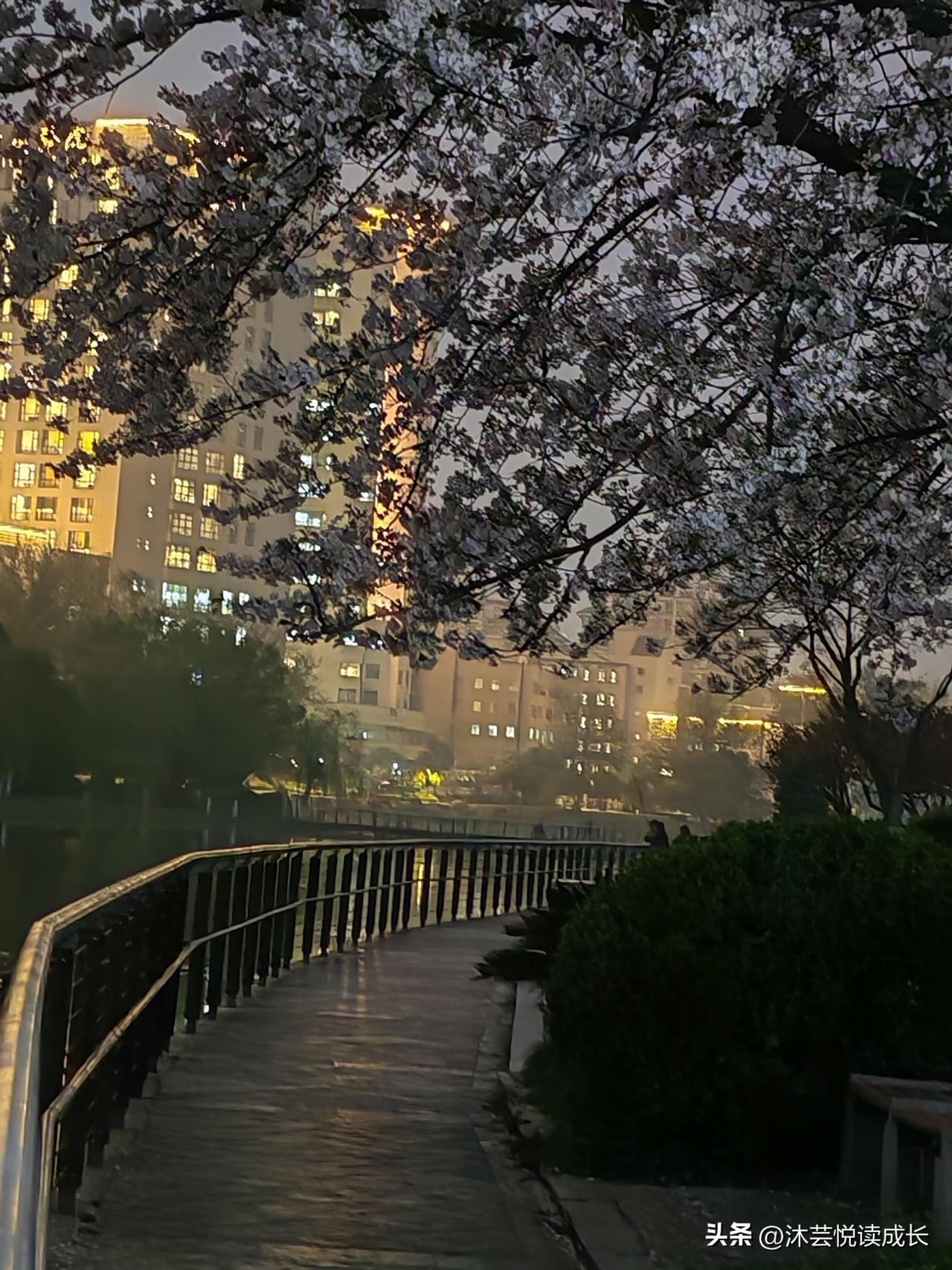 晚饭后没什么事,就沿着小桃园的湖边慢慢散步。 抬头是夜空中缀着的满树樱花,粉白的花瓣在暮色里轻轻晃着,连风都带着软乎乎的花香。 抬眼是古城墙的飞檐翘角,暖黄的灯光落在水面上,和岸边的紫荆花撞了个满怀,紫艳艳的花团,把春夜都染得热烈起来。 退休后的日子,最舒服的莫过于这样的时刻。 不用赶时间,不用操心谁,就沿着湖边慢慢走,看花开,看水静,看古城在暮色里温柔下来。 原来最好的晚年,从来不是大富大贵,而是有这样一段闲下来的时光,能好好看看身边的春,好好享受属于自己的安静。 记录生活,随手拍张照 分享手机里随手拍的风景照片