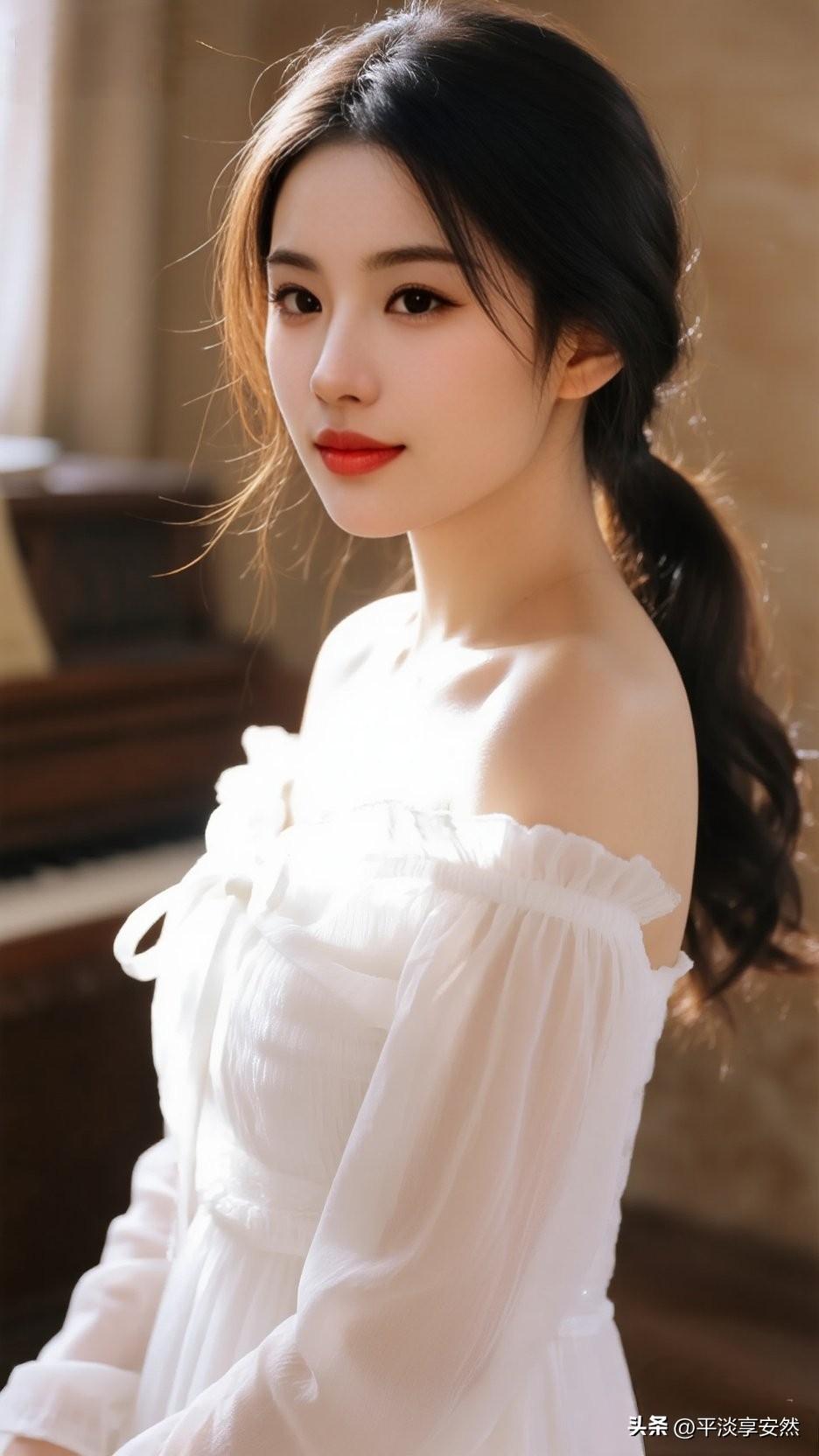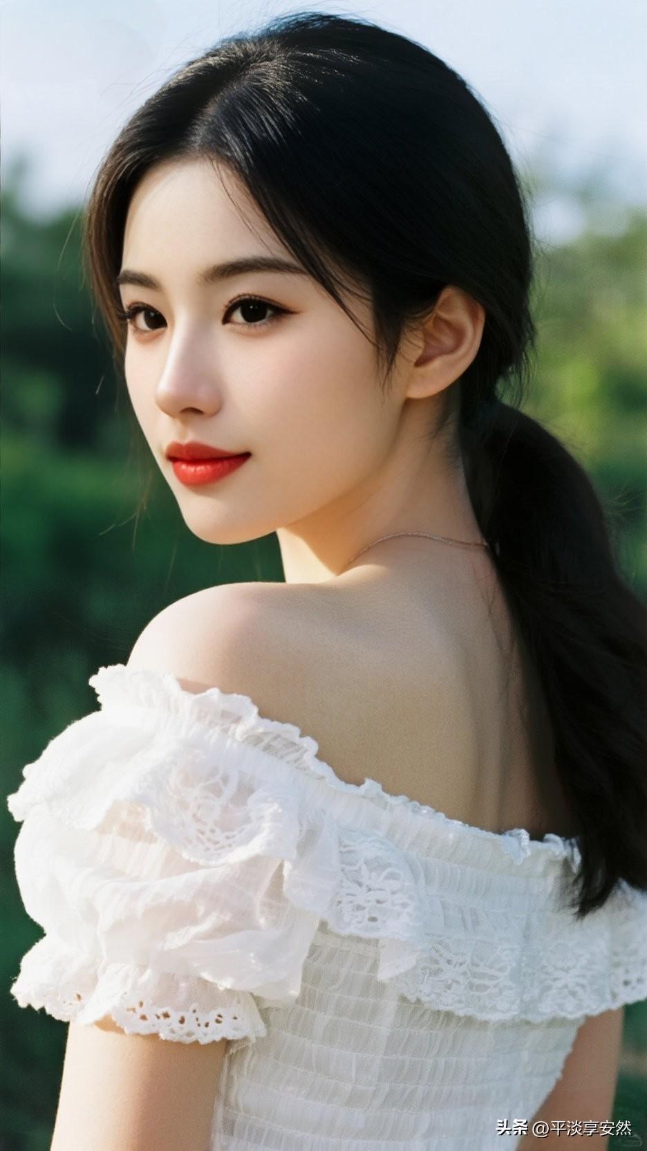 姣姣春日盛景,阳光下的甜美少女,红唇白裙,清新自然。