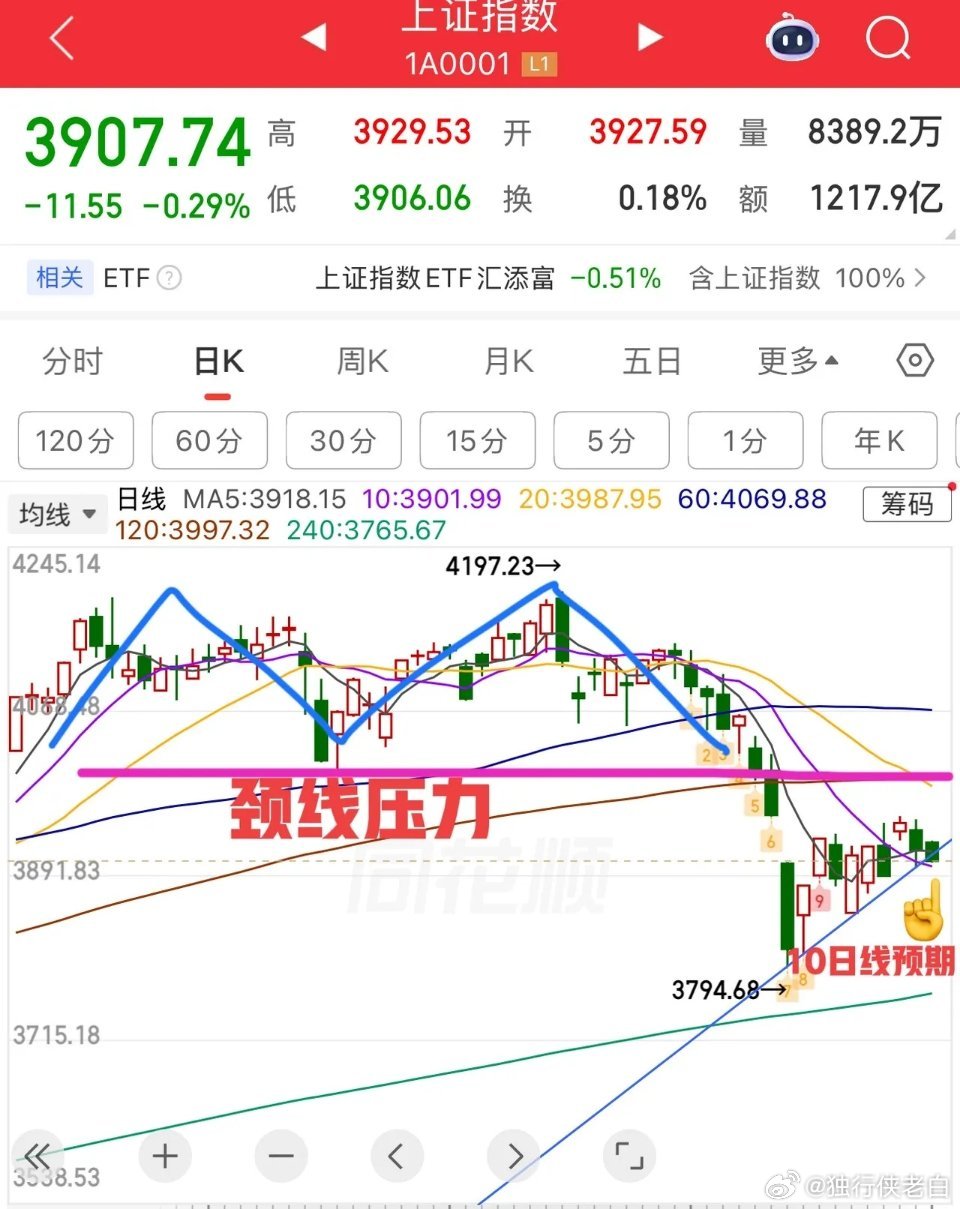 2026.4.3周五早评: 上证指数为高开三阴盘,弱势震荡为主,小阴小阳。节前效应,未见增量,指数预期就不要太高,核心还是10日线,不破则节后有拐头预期。 短期指数受外围干扰,走势容易反复,但本质还是中枢震荡在延续。技术面看,10日线方向下周有拐头预期, 守住10日线上方震荡,就有条件延续震荡向上往20日线靠拢的可能,这是均线的预期思路。 实际上这个与去年10-11月份的走势如出一辙,大家可以比较一下去年的走势,就是10日线的拐头预期,但注意颈线4000点附近的压力。 个人观点,仅供参考!