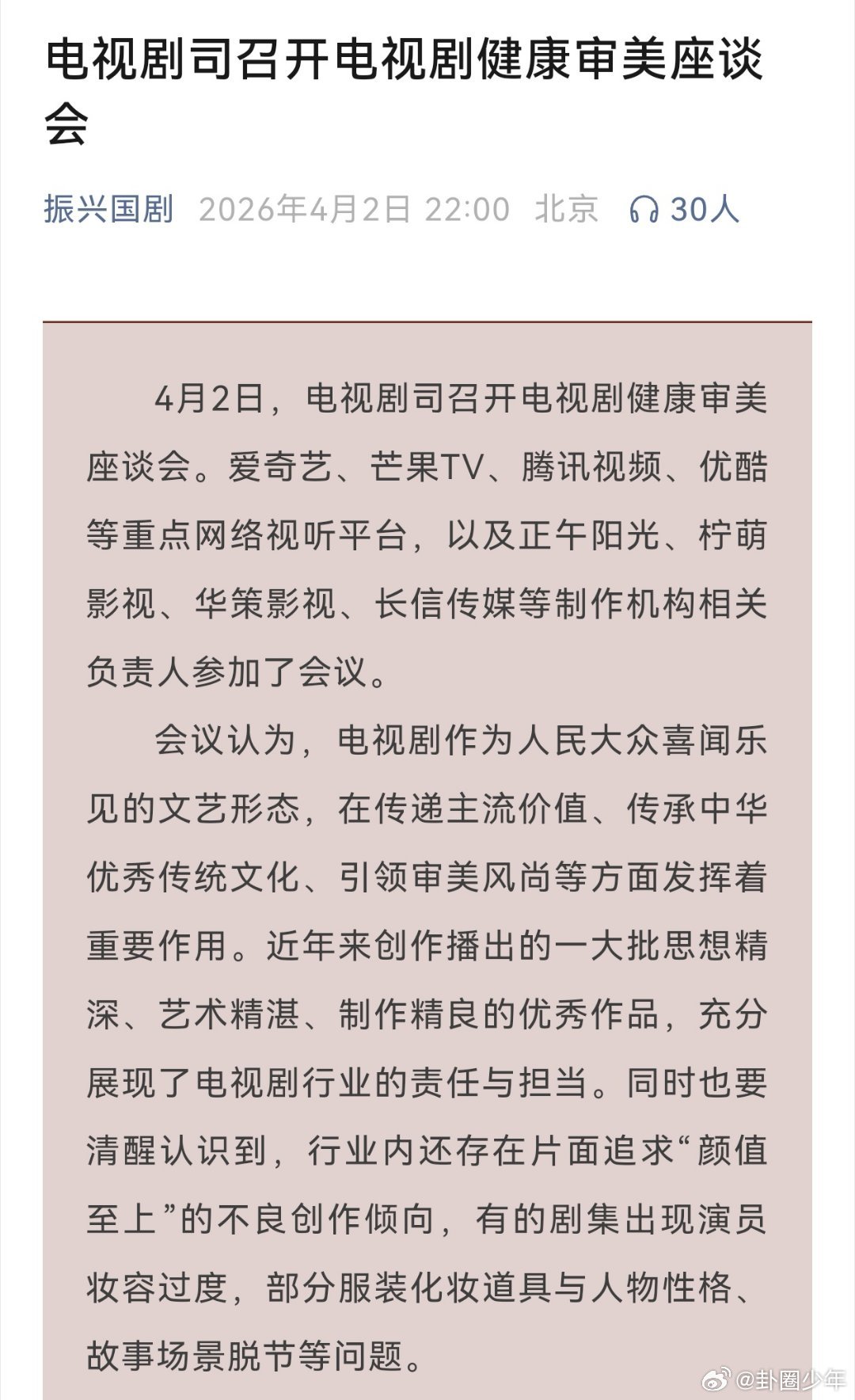电视剧从明星中心制转向剧本中心制电视剧要树立健康审美观念电视剧行业座谈会直面妆容