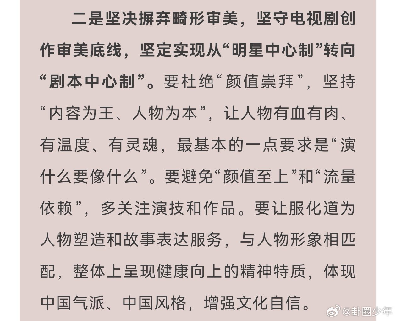 电视剧从明星中心制转向剧本中心制电视剧要树立健康审美观念电视剧行业座谈会直面妆容过度、服化道违和等现象,倡导树立健康审美,回归优质内容。