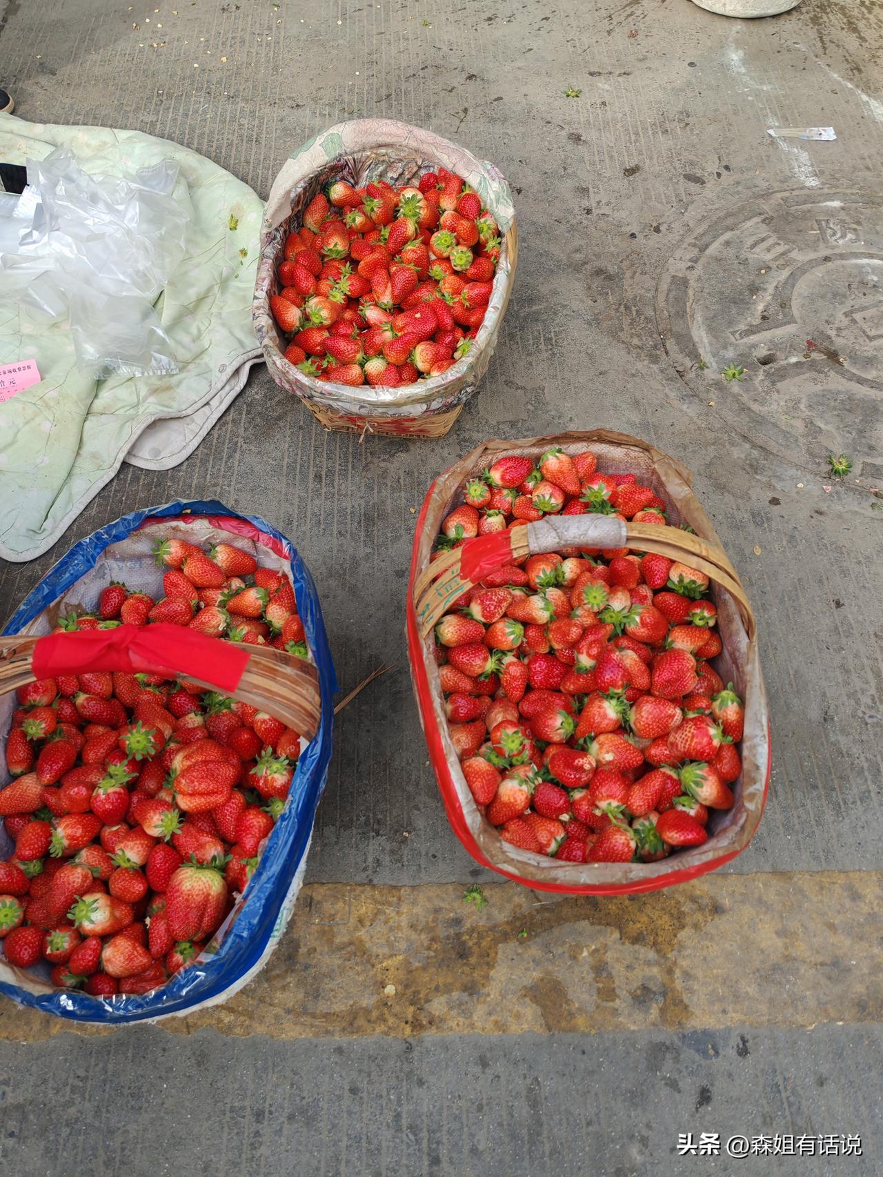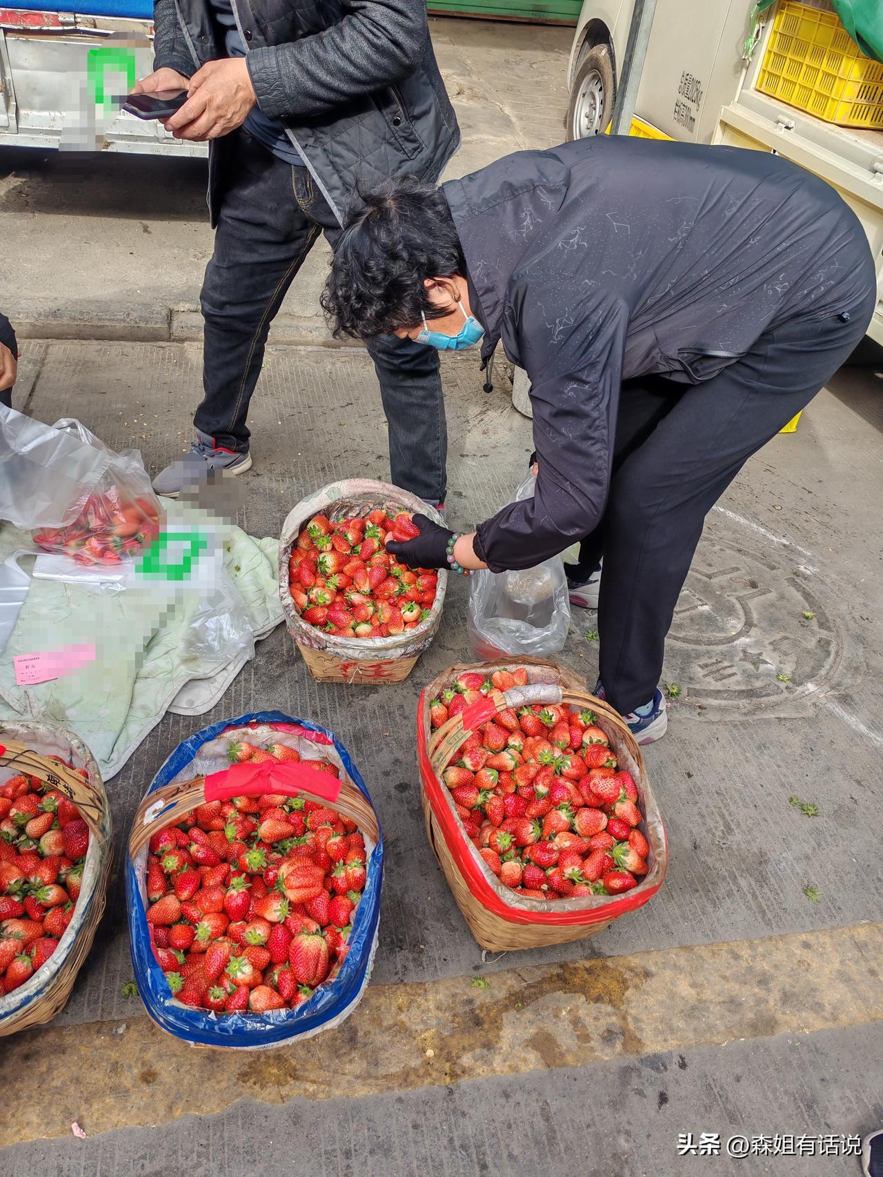 为啥冬季盆盆草莓不好卖?今天我算是知道原因了。这是4月3日上午,我路过西安一处早市拍摄的几张图片。 路边来了一个卖草莓的大哥,面前摆着六筐草莓和采摘的的一些野菜,筐子里的草莓红艳艳,水灵灵,甚是新鲜。 我问了一下价,8元1斤,围着的顾客还挺多,退休的大叔大婶们购买热情高,你一袋我一袋,大哥的生意不错。 而反观不远处还有一个草莓摊,三轮车上摆着一盆盆的草莓,10元一盆,说是2斤,但买的人不多。 大家更趋向于买这种散装草莓,我认为大概有这些原因: 这种草莓是露天种植的,日照充足,那种盆盆草莓是大棚货,生长周期短,口感一对比,露天草莓吃起来更为可口。 人们一直都认为就该在春末夏初吃草莓,而冬天那种大棚货是反季节种植,越来越多的人担心科技狠活,对反季节水果不感兴趣。 而且现在是草莓生长旺季,价格亲民又新鲜,人们会自然而然的选择当季水果,郊区农户的这种露天草莓优势明显。 还有一个原因,买盆盆草莓的不少人都踩过坑,外表一层草莓看起来好,结果买回家,下面很多小果烂果,还垫着一层厚厚的叶子。 而这种大筐的草莓,顾客可以自由挑选,大小随意,看上哪个挑哪个,不会买到坏果,这一比较,当然更受欢迎。