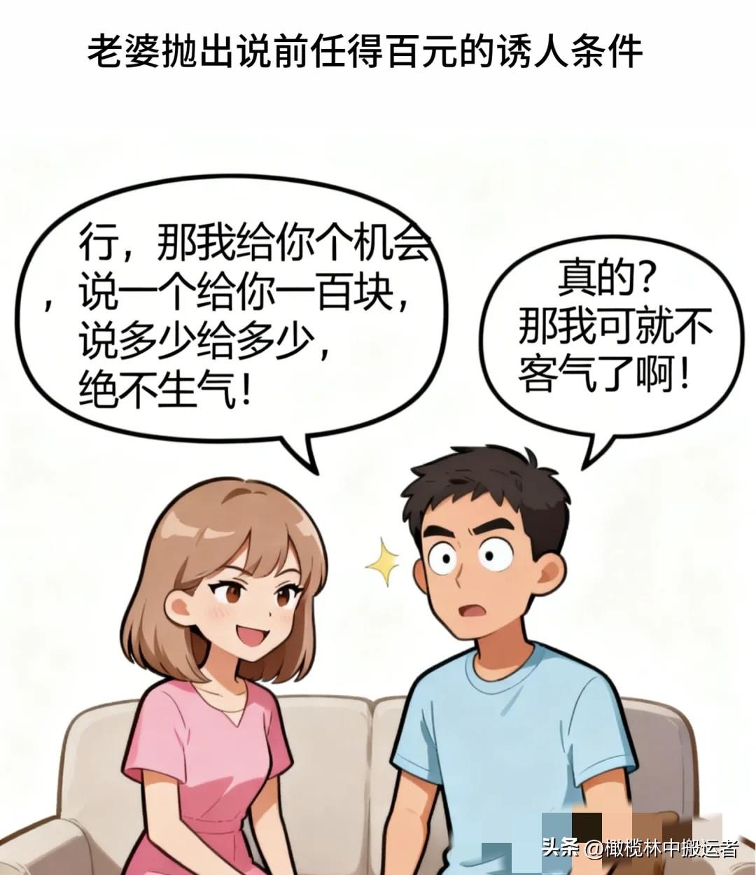 趣味漫画:老婆:说一个前女友给你一百,绝不生气!我:那我不客气了,高中同桌、大学学姐…老婆:我说给多少给多少,没说不揍你啊!