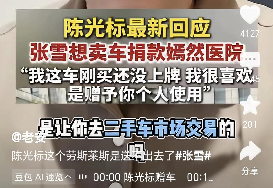 陈光标回应张雪要卖车张雪不按套路出牌,中国首善进退两难,笑死我了