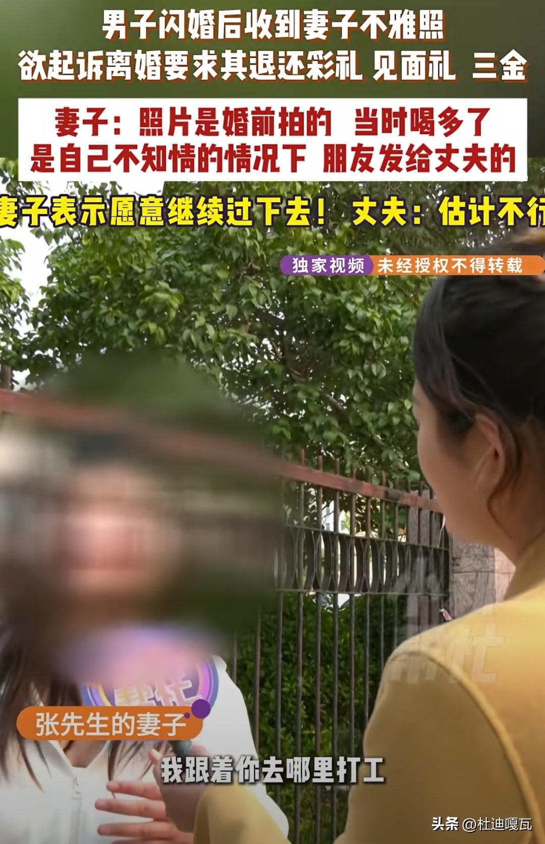 新婚男子心态确实崩了!刚结婚就收到妻子不雅照,这事让谁心里也过不去这个坎。 河南商丘一男子就碰到了一个糟心事,刚闪婚没几天,突然收到朋友发来的妻子跟别人的不雅照。 男子怀疑自己遇上了骗婚,没有任何犹豫直接起诉离婚,并要求把彩礼、见面礼、三金全都退回来。 而女方解释照片是婚前醉酒拍的,自己并不知情,为了表示自己的忠贞,说可以让夫去哪里打工自己就跟到哪里。 有网友说,这个男子真是清醒,女子在婚前这么不注意,可能就说明这个女子平常就是这种做事风格。 也有网友说,就算是有什么,那也是婚前的个人行为,其他人都管不了,再说谁也不能肯定女子婚后就不会改。 大家认为哪种说法对呢?
